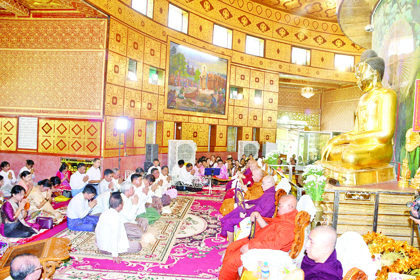 ဆဋ္ဌသင်္ဂါယနာသာသနာ့သမိုင်းဝင် သီရိမင်္ဂလာကမ္ဘာအေးစေတီတော်မြတ်ကြီး ဘဏ္ဍာတော်ထိန်း ဂေါပကအဖွဲ့က ကြီးမှူးကျင်းပသည့် အဆင့်မြင့်တာရာဇိုကြမ်းခင်းနှင့် ရင်ပြင်တော်နေပူခံစကျင်ကျောက်ပြား ခင်းကျင်းမှုအပိုင်း(၁)အောင်ပွဲ ရေစက်သွန်းလောင်း အလှူတော်မင်္ဂလာ အခမ်းအနားကို ယနေ့ မွန်းလွဲ ၂ နာရီတွင် အဆိုပါစေတီတော်၌ ကျင်းပသည်။