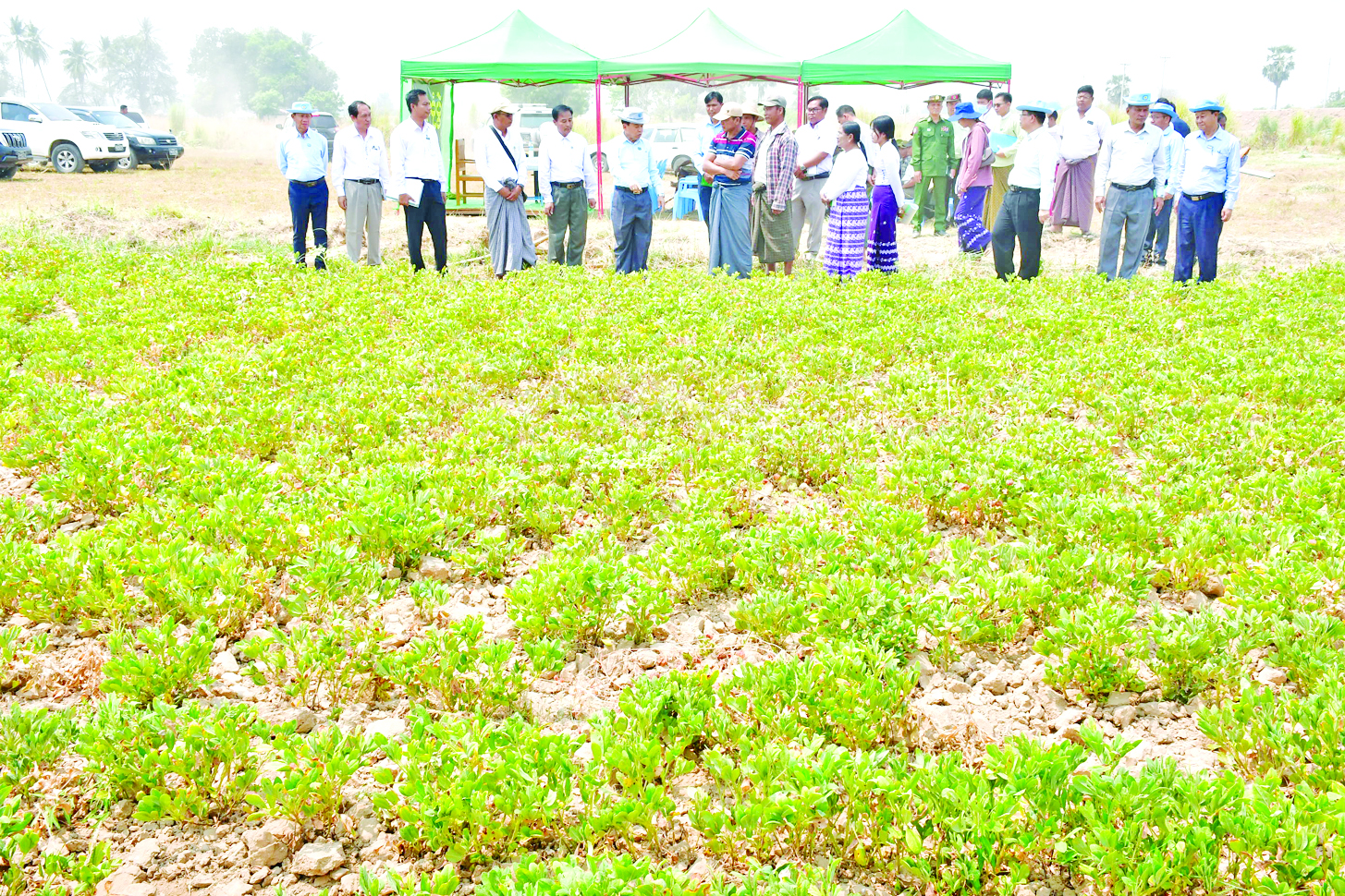 ဆက်လက်၍ တပ်ကုန်းမြို့နယ် အနော်ရထာအုပ်စု ကွင်းအမှတ် (၁၄၁၄) အတွင်းရှိ ရေကြီးနစ်မြုပ်ပျက်စီးခဲ့သည့် လယ်မြေများတွင် ပြန်လည်စိုက်ပျိုးထားသည့် မြေပဲခင်းများနှင့် အောင်မြေရိပ်သာကျေးရွာအနီး ပဲတီစိမ်းစိုက်ခင်းများ အောင်မြင်ဖြစ်ထွန်းနေမှုကို သွားရောက်ကြည့်ရှုစစ်ဆေးပြီး တောင်သူများ၏ လိုအပ်ချက်များကို သက်ဆိုင်ရာဌာနများနှင့် ပေါင်းစပ်ဆောင်ရွက်ပေးသည်။