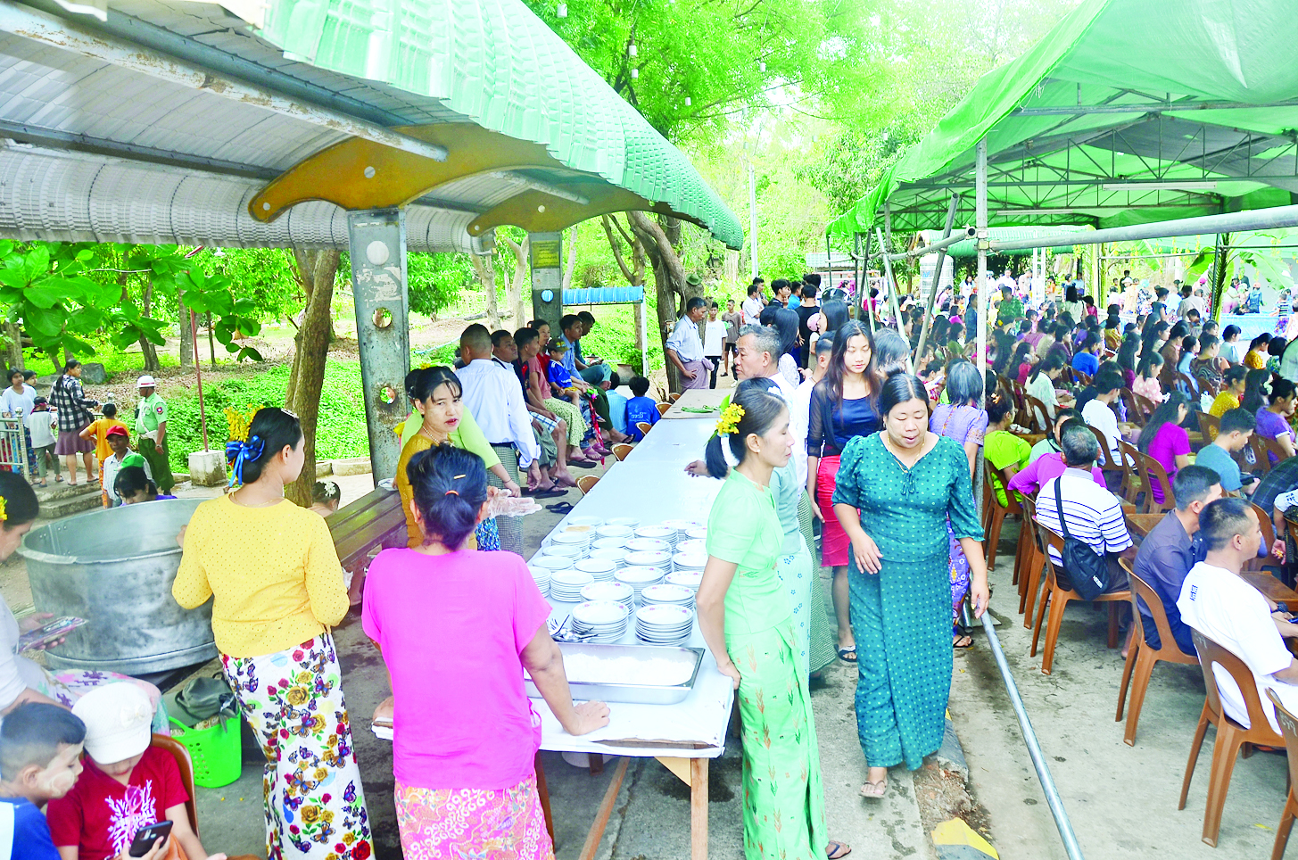 ထိုသို့ မြန်မာ့ရိုးရာ နှစ်သစ်ကူးအတာသင်္ကြန်ကျင်းပချိန်တွင် ပါဝင်ဆင်နွှဲကြသူများကို မြန်မာ့ရိုးရာအတာသင်္ကြန် စတုဒိသာများဖြင့် ဧည့်ခံကျွေးမွေးခြင်းများ၊ သနပ်ခါးသင်္ကြန်ဆင်နွှဲခြင်း၊ မြန်မာ့ရိုးရာ အစဉ်အလာနှင့်အညီ သက်ကြီးဘိုးဘွားများအား ကုသိုလ်ပြုပူဇော် ကန်တော့ကြခြင်း၊ အန္တရာယ်ကင်းပရိတ်ရွတ်ဖတ်ခြင်း၊ ဇီဝိတဒါနငါးလွှတ်ခြင်း၊ ငှက်လွှတ်ခြင်းစသည်တို့ကို ပြုလုပ်၍ နှစ်ဦးကုသိုလ်ယူခဲ့ကြကြောင်း သိရသည်။