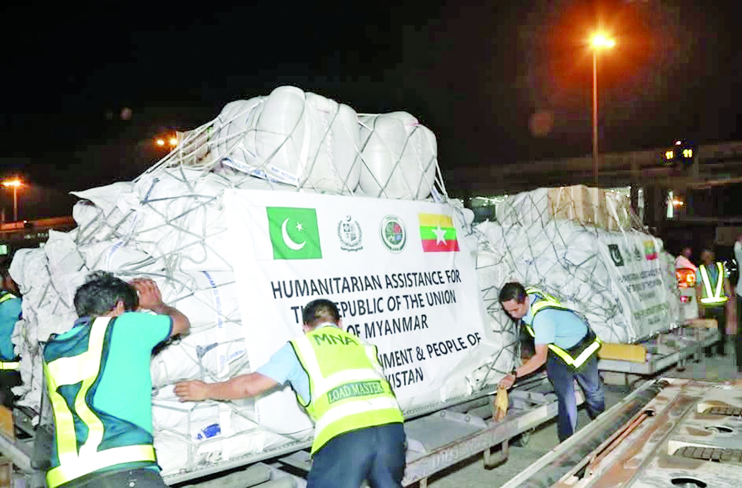မြန်မာနိုင်ငံ၌ မတ် ၂၈ ရက်တွင် လှုပ်ခတ်ခဲ့သည့် မန္တလေးမြေငလျင် ကြီးကြောင့် နေပြည်တော်ကောင်စီနယ်မြေ၊ စစ်ကိုင်းတိုင်းဒေသကြီး၊ မန္တလေးတိုင်းဒေသကြီး၊ မကွေးတိုင်းဒေသကြီး၊ ရှမ်းပြည်နယ်နှင့် ပဲခူးတိုင်းဒေသကြီးတို့တွင် ပျက်စီးဆုံးရှုံးမှုများဖြစ်ပေါ်ခဲ့ရာ နိုင်ငံတော် အစိုးရအနေဖြင့် အလျင်အမြန်စုံစမ်းစစ်ဆေးခြင်း၊ ကူညီကယ်ဆယ်ရေး လုပ်ငန်းများကို အချိန်နှင့်တစ်ပြေးညီ ဆောင်ရွက်ခြင်းနှင့် ပြည်ပမှ လူသားချင်းစာနာထောက်ထားမှုဆိုင်ရာ အကူအညီများကို ဖိတ်ခေါ်လမ်းဖွင့်ပေးခြင်းများ ဆောင်ရွက်ခဲ့သည်။ ငလျင်ဒဏ်သင့်ပြည်သူ များထံ နိုင်ငံတကာမှကူညီထောက်ပံ့သည့် လူသားချင်းစာနာထောက်ထား မှုဆိုင်ရာ အကူအညီပစ္စည်းများ၊ ဆေးဝါးများသည် မတ် ၂၉ ရက် ညပိုင်းမှစ၍ ရန်ကုန်အပြည်ပြည်ဆိုင်ရာလေဆိပ်၊ နေပြည်တော်အပြည်ပြည် ဆိုင်ရာလေဆိပ်၊ မန္တလေးအပြည်ပြည်ဆိုင်ရာလေဆိပ်နှင့် ရန်ကုန်သီလဝါဆိပ်ကမ်းတို့သို့ ရောက်ရှိလာခဲ့သည်။