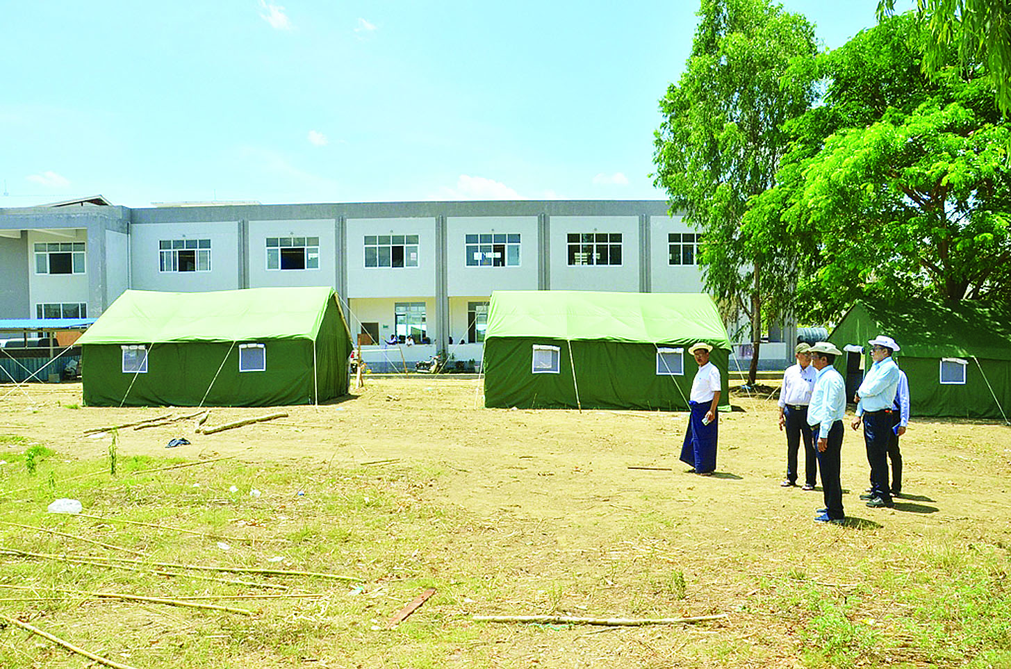 ထို့နောက် ပြည်ထောင်စုဝန်ကြီး၊ ဒုတိယဝန်ကြီးနှင့် တာဝန်ရှိသူများသည် နေပြည်တော် ဗဟိုသင်တန်းကျောင်းဝင်းအတွင်း မြေနေရာလွတ်များတွင် ငလျင်ဘေးသင့်ဝန်ထမ်းများနှင့် မှီခိုမိသားစုများ ယာယီနေထိုင်နိုင်ရန်အတွက် Southern Power Grid (CSG)မှ လာရောက်လှူဒါန်းသည့် ယာယီရွက်ဖျင်တဲများ တပ်ဆင်တည်ဆောက်နေမှု၊ သင်တန်းဆောင်အဆောက်အအုံခန်းမအတွင်း အခန်းများဖွဲ့စည်းဆောင်ရွက်ပြီး၍ ဝန်ထမ်းများနှင့် မှီခိုမိသားစုများအား နေရာချထားမှု၊ သင်တန်းကျောင်းဝင်းအတွင်း မြေနေရာလွတ်များတွင် Modular House များ တည်ဆောက်နိုင်ရန် Backhoe ယာဉ်ဖြင့် မြေနေရာပြုပြင်ဆောင်ရွက်နေမှု၊ ကျန်းမာရေးစောင့်ရှောက်မှုပေးနိုင်ရန် ယာယီဆေးခန်းဖွင့်လှစ်ဆောင်ရွက်ထားရှိမှုနှင့် ယာယီတဲများ တည်ဆောက်ပြီးစီးမှုအခြေအနေတို့ကို ကြည့်ရှုစစ်ဆေးပြီး ငလျင်ဘေးသင့်ဝန်ထမ်းများနှင့် မှီခိုမိသားစုများအား ရေ၊ မီး၊ မိလ္လာပြည့်စုံအဆင်ပြေစွာဖြင့် နေထိုင်နိုင်ရန်အတွက် တည်ဆောက်ရေးလုပ်ငန်းများကို အမြန်ပြီးစီးရေးတာဝန်ရှိသူများအား လိုအပ်သည်များ မှာကြားသည်။