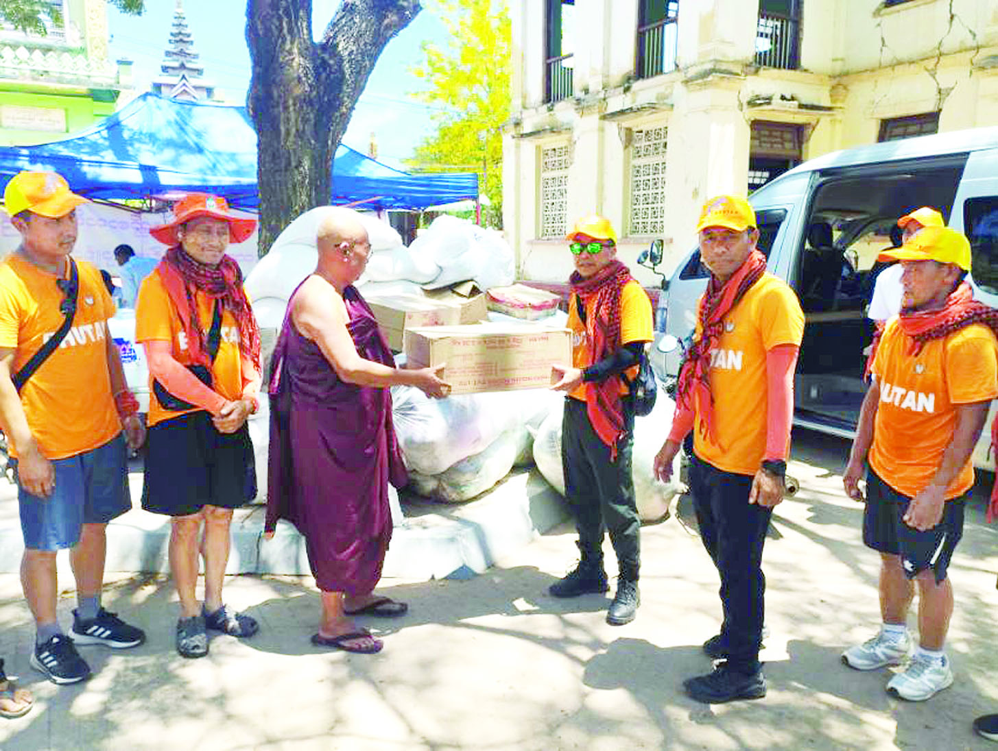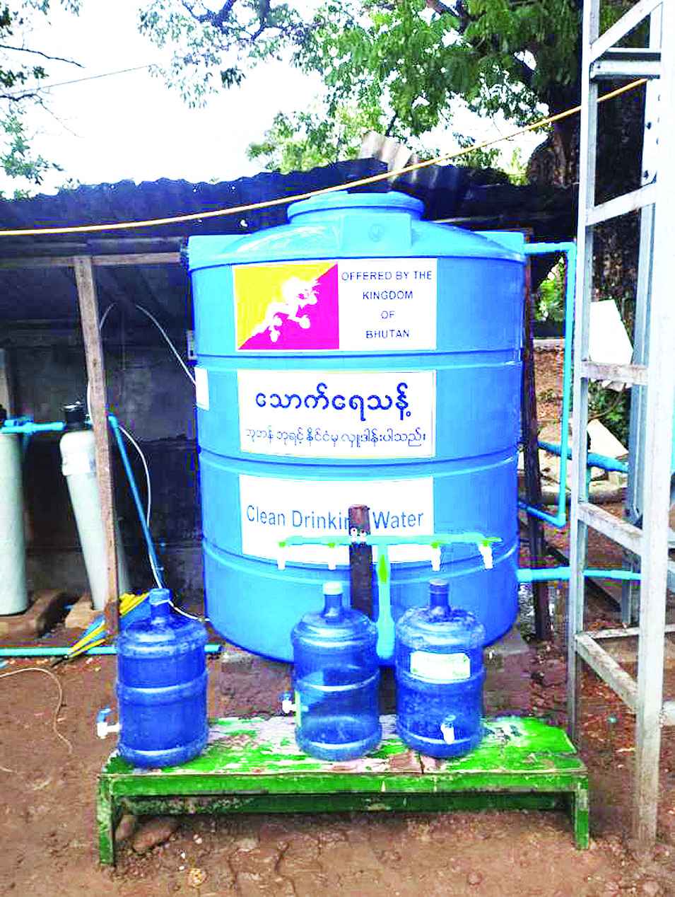 ငလျင်ဘေးဒဏ်သင့်ပြည်သူများအား ဆေးဝါးကုသပေးရန်အတွက် ရောက်ရှိနေသည့် ဘူတန်ဘုရင့်နိုင်ငံမှ ဆေးဘက်ဆိုင်ရာ အရေးပေါ်ကယ်ဆယ်ရေးအဖွဲ့ သည် ယနေ့နံနက်ပိုင်းတွင် ပြည်ထောင်စုနယ်မြေ နေပြည်တော် ပျဉ်းမနားမြို့နယ် ညောင်ပင်သာကျေးရွာ အခြေခံပညာအထက်တန်းကျောင်း၌ ခေတ်မီအလိုအလျောက်ရေသန့်စင်စက်နှင့် ရေလီတာ ၂၀၀၀ ဆံ့ ရေတိုင်ကီတို့ကို တပ်ဆင်လှူဒါန်းခဲ့ပြီး အဖွဲ့ခေါင်းဆောင် Dasho Tashi Wangyal က ကျောင်းအုပ်ဆရာကြီးနှင့် ဆရာ၊ ဆရာမများအား လှူဒါန်းရခြင်းအကြောင်းရင်း၊ နေပြည်တော်တွင် ငလျင်ဘေးဒဏ်သင့်လူနာ ၃၀၀၀ ကျော်ကို ဆေးဝါးကုသပေးနိုင်ခဲ့မှုနှင့် သန့်ရှင်းသောသောက်သုံးရေ လိုအပ်လျက်ရှိသည့် နေရာများတွင် ခေတ်မီရေသန့်စင်စက်လေးလုံးတပ်ဆင်လှူဒါန်းပေးမှု အခြေအနေတို့ကို ရှင်းလင်းပြောကြားသည်။