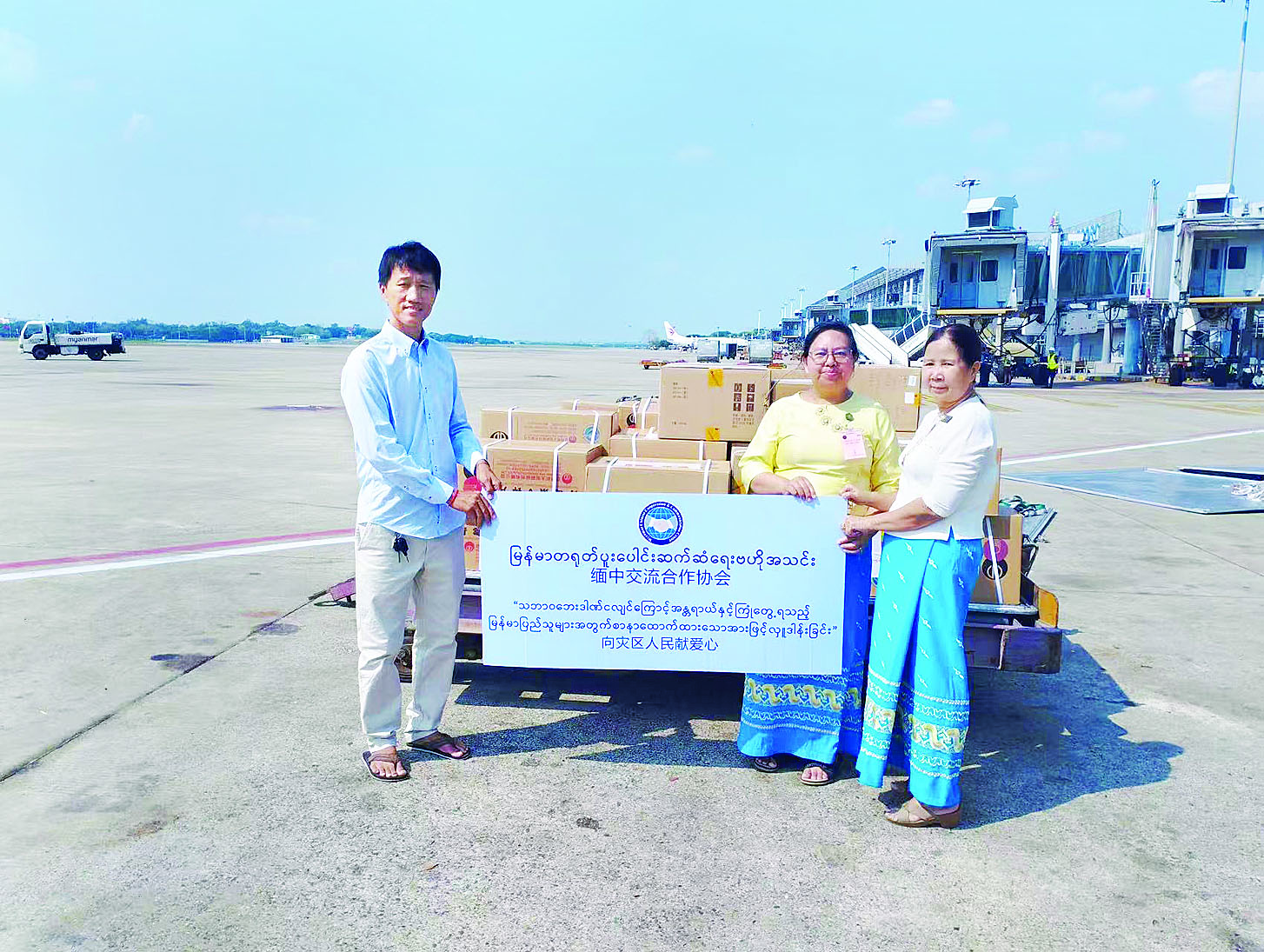 အဆိုပါ အခြေအနေကြောင့် ငလျင်ဒဏ်သက်ရောက်ခဲ့သည့် နေရာများတွင် နေထိုင်သည့် ပြည်သူများ၊ နိုင်ငံ့ဝန်ထမ်းများ အတိဒုက္ခရောက်ရှိပြီး အဘက်ဘက်မှ လိုအပ်ချက်များ ရှိနေခဲ့သည်။ အဆိုပါထိခိုက်ပျက်စီးမှုအပေါ် လူသားချင်းစာနာထောက်ထားသောအားဖြင့် တရုတ်-မြန်မာ ပူးပေါင်းဆက်ဆံရေးဗဟိုအသင်းသည် အဆိုပါသဘာဝဘေးဒဏ်သက်ရောက်သည့် ဒေသများကို ထောက်ပံ့ကူညီရန်အတွက် ဆောင်ရွက်ပေးလျက်ရှိရာ ယူနန်ပြည်နယ် Yunnan Overseas Chinese Charity Foundation မှ မြန်မာနိုင်ငံ ငလျင်ဘေးအန္တရာယ်အတွက် တရုတ်ယွမ် ၆၅၈၃၂၀ တန်ဖိုးရှိ ဆေးပစ္စည်းများ လှူဒါန်းခဲ့သည်။