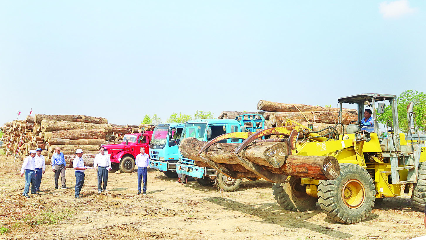 ထိုမှတစ်ဆင့် ပြည်ထောင်စုဝန်ကြီးသည် နေပြည်တော်လယ်ဝေးမြို့နယ်ရှိ ခေတ်အေးသစ်ဆိပ်သို့ သွားရောက်၍ သစ်ဆိပ်အတွင်း သစ်မာသစ်လုံး တန် ၄၃၀၀ စုပုံထားမှု အခြေအနေနှင့် သစ်စက်များသို့ သစ်လုံးများ တင်ပို့နေမှုအခြေအနေများကို ကြည့်ရှုစစ်ဆေးရာ တာဝန်ရှိသူများက သစ်မျိုးအလိုက် သစ်ဆိပ်လက်ကျန် ကျန်ရှိမှု၊ သစ်စက်များသို့ ပို့ဆောင်ပြီးစီးမှု၊ ခွဲစိတ်ဆောင်ရွက်နေမှုနှင့် ဆက်လက်ဆောင်ရွက်မည့် အစီအစဉ်များကို ရှင်းလင်းတင်ပြသည်။ ပြည်ထောင်စုဝန်ကြီးက သစ်စက်များသို့ သစ်လုံးများပို့ဆောင်ရေး၊ သစ်စက်များတွင် သစ်ခွဲသားများ ခွဲစိတ်ရေးလုပ်ငန်းများကို အရှိန်အဟုန်ဖြင့် ဆောင်ရွက်သွားရမည်ဖြစ်ကြောင်း၊ လိုအပ်ပါက သစ်ဆိပ်များတွင် သစ်ခွဲစက်များ တည်ထောင်၍ ခွဲစိတ်ဆောင်ရွက်ရန်လိုကြောင်း၊ နေပြည်တော်ဧရိယာအပြင် အခြားတိုင်းဒေသကြီးများရှိ သစ်ဆိပ်များမှ သစ်လုံးများအား သစ်စက်များသို့ တင်ပို့ခွဲစိတ်ခြင်းများ ဆောင်ရွက်လျက်ရှိကြောင်း သစ်ဆိပ်များမှ သစ်လုံးများအား သယ်ယူပို့ဆောင်ရာတွင် ဘေးအန္တရာယ်ကင်းရှင်းရေးအတွက် စနစ်တကျစီမံဆောင်ရွက်ရန် မှာကြားသည်။