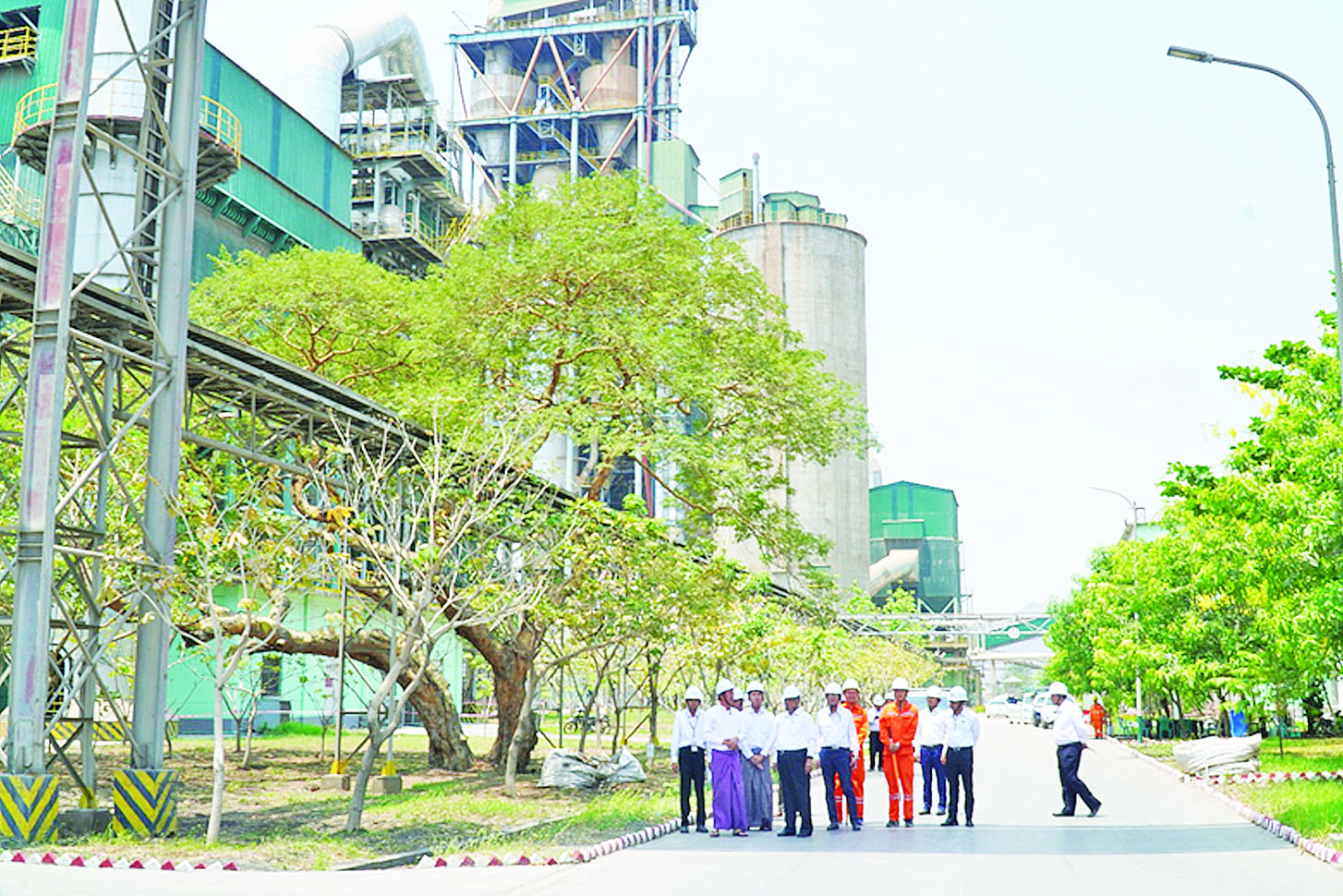 ထို့နောက် ပြည်ထောင်စု ဝန်ကြီးသည် စက်ရုံအစည်းအဝေးခန်းမ၌ စက်ရုံတာဝန်ရှိသူများနှင့်တွေ့ဆုံ၍ ထိခိုက်ပျက်စီးခဲ့သည့် စက်ပစ္စည်း၊ အဆောက်အအုံများအား သတ်မှတ်အချိန်တွင် ပြီးစီးရေးအတွက် လက်တွေ့ကျသည့် အစီအမံများ ရေးဆွဲဆောင်ရွက်ရမည်ဖြစ်ကြောင်း၊ စက်ရုံအားသတ်မှတ်အချိန် မတိုင်မီလည်ပတ်နိုင်ရေးအတွက် စစ်ဆေးပြုပြင်ခြင်း လုပ်ငန်းများကိုနေ့ဆိုင်း၊ ညဆိုင်းများဖြင့် ဆောင်ရွက်ရမည် ဖြစ်ကြောင်း၊ စက်ရုံအတွင်း ပျက်စီးခဲ့သည့်အခြေအနေများကို သင်ခန်းစာဖော်ထုတ်၍ စစ်ဆေးပြုပြင်ခြင်းလုပ်ငန်းများကို ဆောင်ရွက်ရမည်ဖြစ်ကြောင်း၊ ယခုအချိန်သည် ငလျင်လှုပ်ခတ်မှုကြောင့် ထိခိုက်ပျက်စီးခဲ့မှုများနှင့်ပတ်သက်၍ ပြန်လည်ထူထောင်ရေးလုပ်ငန်းများကို ဆောင်ရွက်ရမည့်အချိန်ဖြစ်သဖြင့် ဘိလပ်မြေများ ထုတ်လုပ်နိုင်ရေးအတွက် စက်ရုံပြန်လည် လည်ပတ်ရေးဆောင်ရွက်နေသည့် လုပ်ငန်းများကို အလေးထားဆောင်ရွက်ရမည်ဖြစ်ကြောင်း၊ ပြန်လည်ထူထောင်ရေး လုပ်ငန်းများကို အရှိန်အဟုန်ဖြင့် ဆောင်ရွက်နိုင်ရေးအတွက် တည်ဆောက်ရေးလုပ်ငန်းများ အတွက်လိုအပ်သော ဘိလပ်မြေများကို စက်စွမ်းအားပြည့် လည်ပတ်ထုတ်လုပ်နိုင်ရေး ကြိုးစားဆောင်ရွက်ရမည် ဖြစ်ကြောင်းမှာကြားသည်။