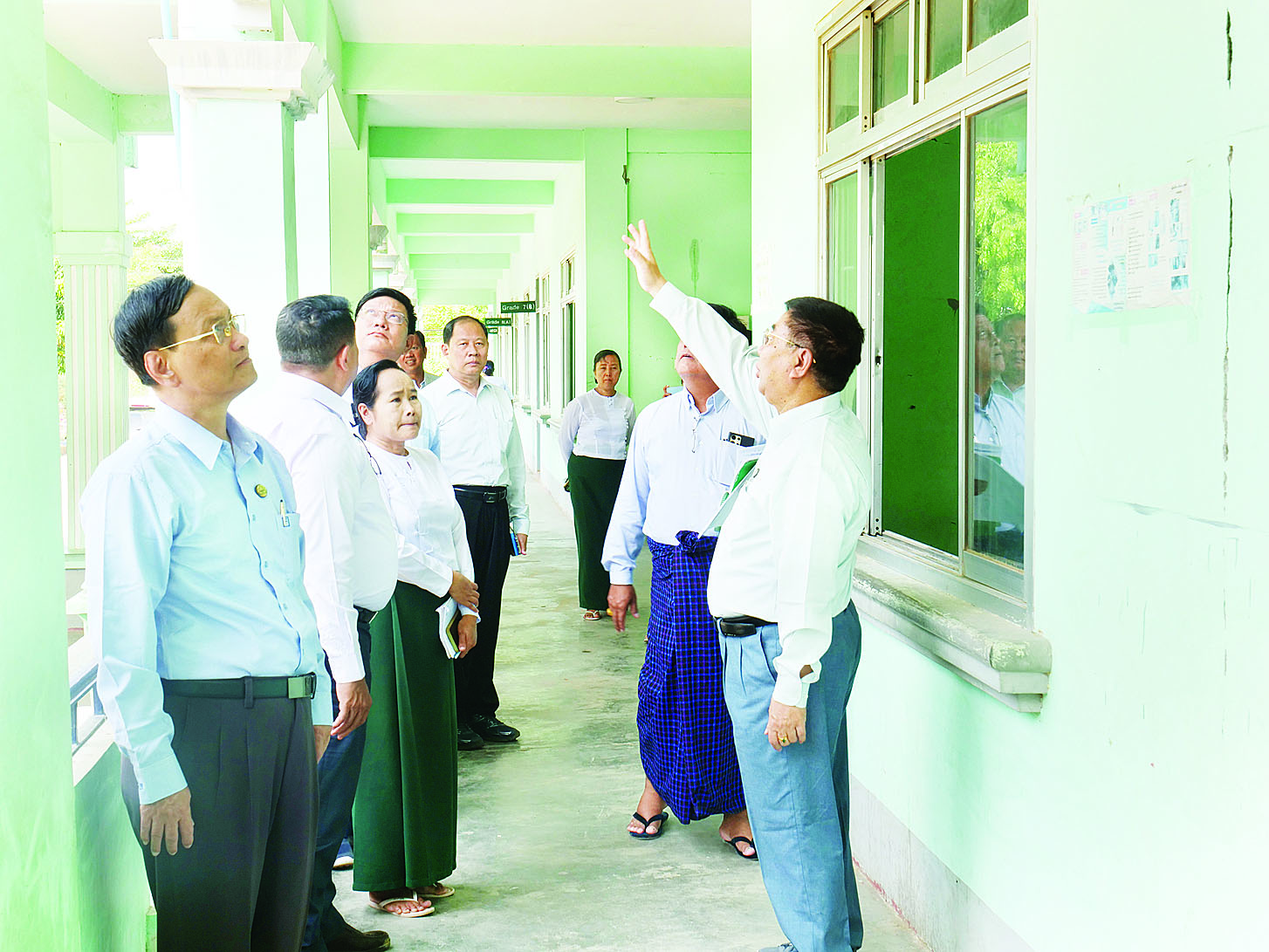 ထိုမှတစ်ဆင့် ပြည်ထောင်စုဝန်ကြီးသည် ဒက္ခိဏသီရိမြို့နယ် အမှတ် (၁၈) အခြေခံပညာ အထက်တန်းကျောင်းသို့သွားရောက်၍ ငလျင်ဘေးဒဏ်ကြောင့် ပျက်စီးမှုအခြေအနေများကို လိုက်လံကြည့်ရှုစစ်ဆေးကာ ပျက်စီးမှုများကို ကျောင်းဖွင့်အမီပြီးစီးအောင် ပြင်ဆင်ရေး စီစဉ်ဆောင်ရွက်ပေးပြီး ဆရာ ဆရာမများအနေဖြင့် မိုးကြိုကာလတွင် ဖြစ်ပေါ်လာနိုင်သည့် မိုးလေဝသဖြစ်စဉ်များနှင့် ပတ်သက်၍ အထူးဂရုပြု နေထိုင်ကြရန်နှင့်သင်္ကြန် ရုံးပိတ်ရက် ကာလပြီးစီး၍ ရုံးများ ပြန်လည်ဖွင့်လှစ်ချိန်တွင် ရုံးလုပ်ငန်းများ ပုံမှန်လည်ပတ်နိုင်အောင် ဆောင်ရွက်ကြရမည်ဖြစ်ကြောင်းမှာကြားကာ သက်ဆိုင်ရာတာဝန်ရှိသူများအား အဆင့်အလိုက် ဆောင်ရွက်ရမည့် လုပ်ငန်းစဉ်များကို ရှင်းလင်းပြောကြား၍ လိုအပ်သည်များ ပေါင်းစပ်ညှိနှိုင်း ဖြည့်ဆည်းဆောင်ရွက်ပေးခဲ့ကြောင်း သိရသည်။