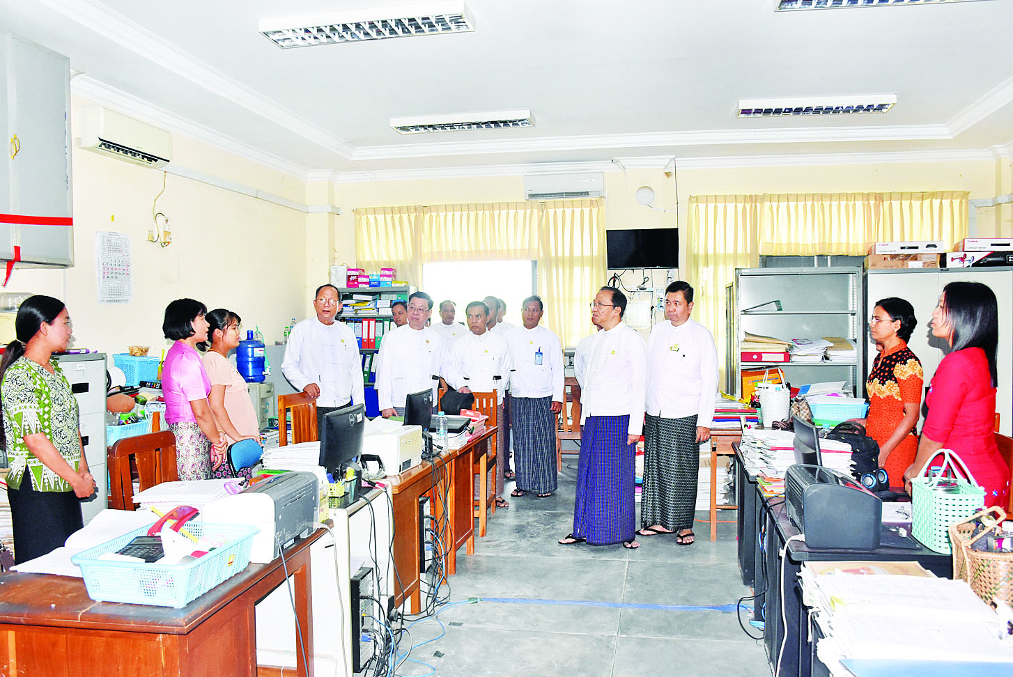ထို့နောက် ပြည်ထောင်စုဝန်ကြီးနှင့် အဖွဲ့သည် ပြည်သူ့ကျန်းမာရေးဦးစီးဌာနနှင့် တိုင်းရင်းဆေးပညာဦးစီးဌာနသို့ သွားရောက်၍ ဝန်ထမ်းများ ရုံးလုပ်ငန်းများ ပုံမှန်ဆောင်ရွက်နေမှုနှင့် ဝန်ထမ်းများ၏ နေထိုင်စားသောက်ရေး အခြေအနေများကို လိုက်လံကြည့်ရှုပြီး အားပေးစကားပြောကြားကာ လိုအပ်သည်များကို မှာကြားခဲ့ကြောင်း သတင်းရရှိသည်။
