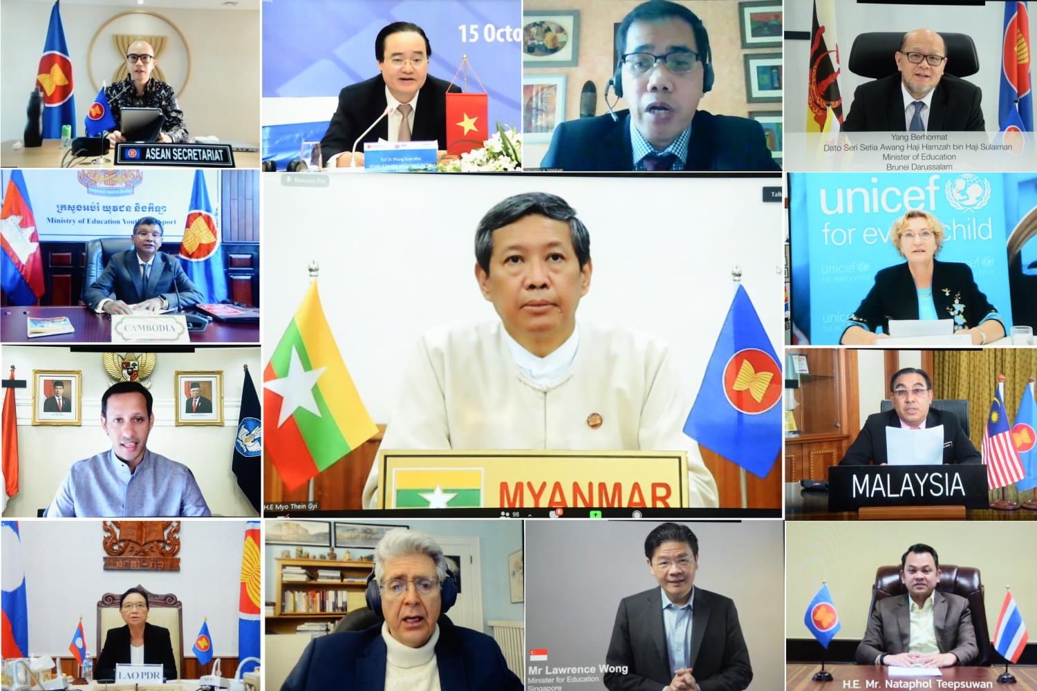 အာဆီယံဒေသတွင်း ပညာရေးစနစ်တွင် ဒီဂျစ်တယ်ဖြင့် ပြုပြင်ပြောင်းလဲမှုဆိုင်ရာ အာဆီယံ-ယူနီဆက်ညီလာခံ (ASEAN-UNICEF Conference on Digital Transformation of the Education System throughout ASEAN) ကို ယနေ့နံနက် ၈ နာရီတွင် Zoom Webinar စနစ်ဖြင့်ကျင်းပသည်။