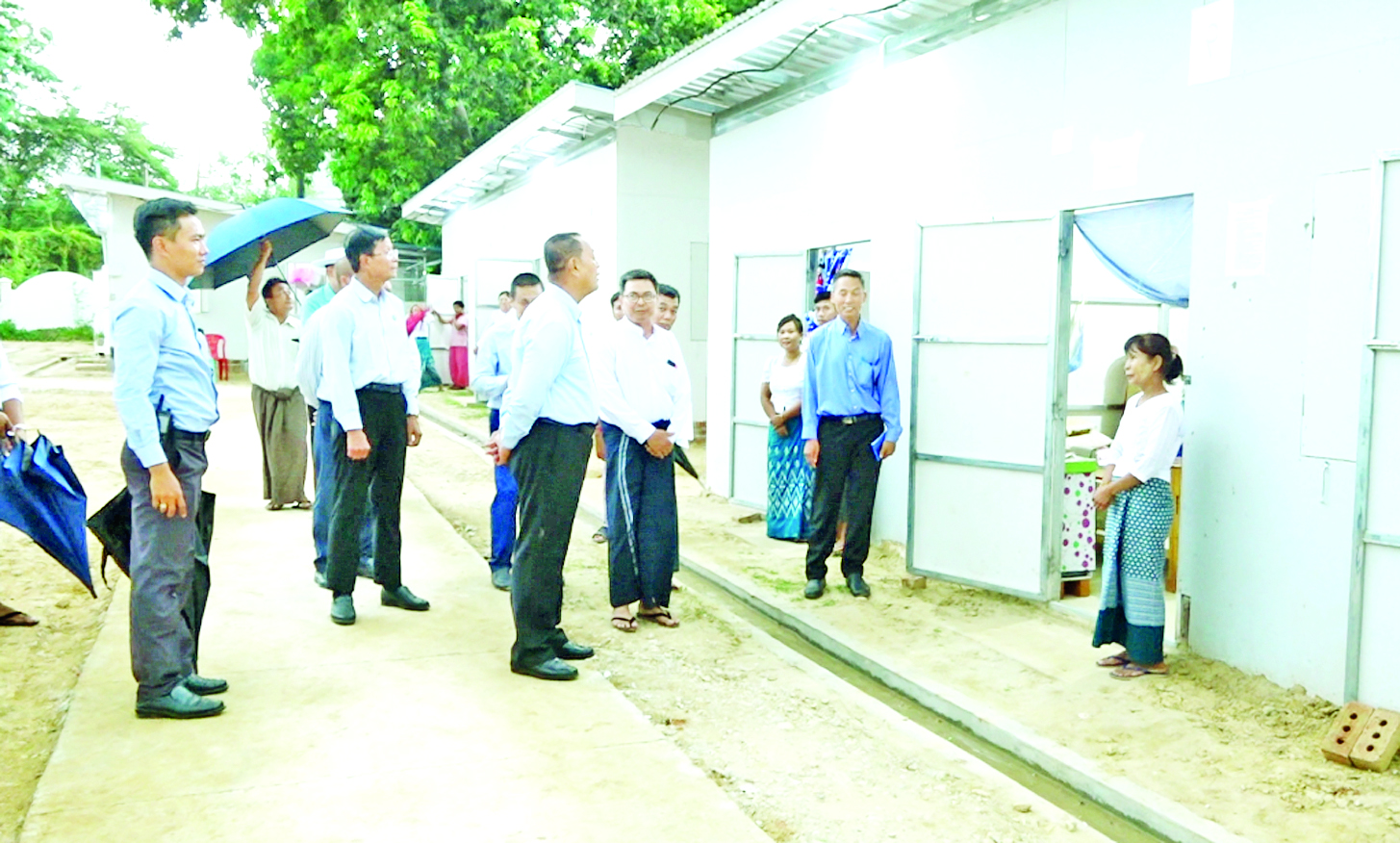 ယင်းနောက် ကျေးလက်ဒေသဖွံ့ဖြိုးတိုးတက်ရေးဦးစီးဌာန ပျဉ်းမနားမြို့ မြောက်လွှတ်ကုန်းရှိ စက်ယန္တရားသိုလှောင်ရုံဝင်းအတွင်း၊ ဇဗ္ဗူသီရိမြို့နယ်ရှိ ပြည်ထောင်စုနယ်မြေ နေပြည်တော် ကျေးလက်လမ်းဖွံ့ဖြိုးရေးဦးစီးဌာန တိုင်းရုံးမြေနေရာ၊ ကျေးလက်ဒေသဖွံ့ဖြိုးတိုးတက်ရေးဦးစီးဌာန (ရုံးချုပ်) ကားပါကင်အတွင်း၊ ဝန်ကြီးဌာနပိုင်မြေနေရာတို့၌ ပြည်ထောင်စုဝန်ကြီးရုံး၊ သမဝါယမဦးစီးဌာနနှင့် အသေးစား စက်မှုလက်မှုလုပ်ငန်းဦးစီးဌာနတို့မှ ငလျင်ဒဏ်သင့်အရာထမ်း၊ အမှုထမ်းဝန်ထမ်းများ နေထိုင်နိုင်ရေးတည်ဆောက်ပြီးစီးခဲ့သည့် ယာယီဘာရှာလိုင်းခန်းများ၌ ပြောင်းရွှေ့နေထိုင်နေမှု အခြေအနေများနှင့် ရေ၊ မီး၊ မိလ္လာစနစ်များ ဆောင်ရွက်ထားရှိမှုအခြေအနေများကိုလည်းကောင်း၊ Prefabricated Modular House များ နေရာချထားမှုနှင့် တပ်ဆင်နေမှုအခြေအနေများကိုလည်းကောင်း ကြည့်ရှုစစ်ဆေးပြီး ပြည်ထောင်စုဝန်ကြီးက ရေ၊ မီး၊ မိလ္လာစနစ်များ စနစ်တကျဖြစ်စေရေး ဆောင်ရွက်ပေးရန် ဆွေးနွေးမှာကြားခဲ့ကြောင်း သိရသည်။