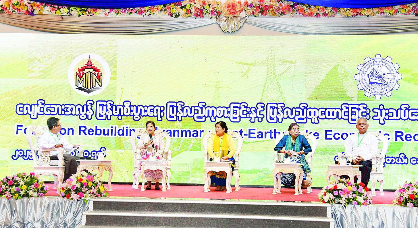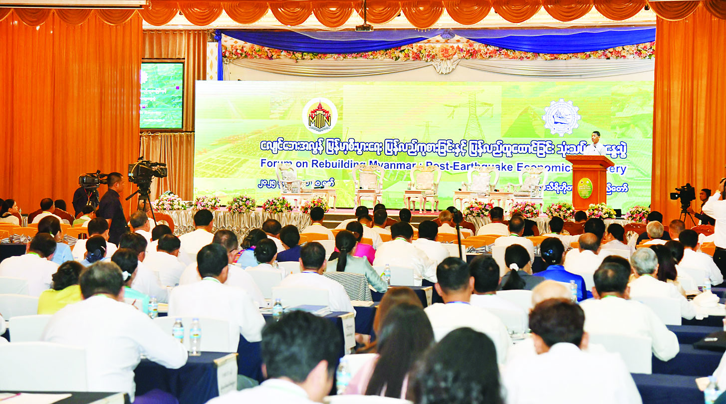ထို့နောက် သုံးသပ်ဆွေးနွေးပွဲ အစီအစဉ်များစတင်ကျင်းပရာ “မန္တလေးငလျင်ကြီး၏ စီးပွားရေးအပေါ်ရိုက်ခတ်မှုများ” ခေါင်းစဉ်ဖြင့်လည်းကောင်း၊ “စီးပွားရေး ပြန်လည်ထူထောင်ခြင်းအတွက် စိန်ခေါ်မှုများနှင့် အခွင့်အလမ်းများ” ခေါင်းစဉ်ဖြင့်လည်းကောင်း၊ “စီးပွားရေးကုစားခြင်းအတွက် စုပေါင်းအဖြေရှာခြင်း” ခေါင်းစဉ်ဖြင့် လည်း ကောင်း ကဏ္ဍသုံးရပ်ခွဲ၍ ဆွေးနွေးကြသည်။