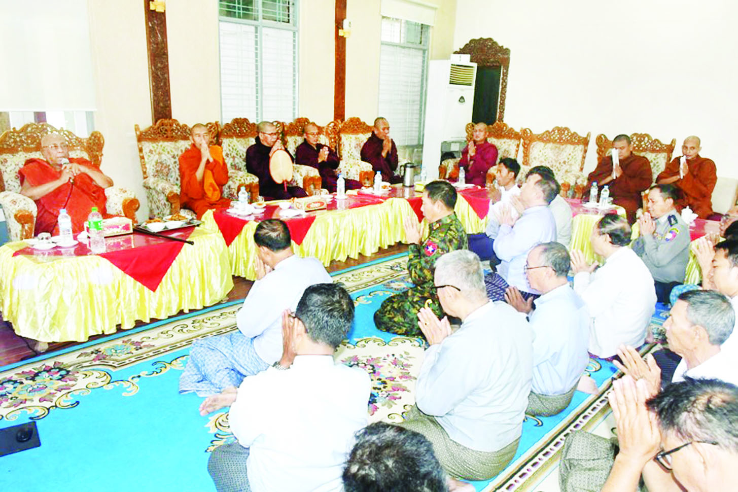 ဦးစွာ တိုင်းဒေသကြီးဝန်ကြီးချုပ်နှင့် ဒုတိယဗိုလ်ချုပ်ကြီးသက်ပုံတို့က ငလျင်ဒဏ်ကြောင့်ပြိုကျပျက်စီးခဲ့သော ရာဇာမဏိစူဠာကောင်းမှုတော် စေတီတော်ကြီး၏ စိန်ဖူးတော်နှင့် သာသနိက အဆောက်အအုံများ ပြန်လည်ပြုပြင်မွမ်းမံတည်ဆောက်မည့် အခြေအနေများကို သီတဂူဆရာတော်ကြီးထံ လျှောက်ထားတင်ပြကြပြီး ဩဝါဒခံယူကြသည်။ ထို့နောက် တိုင်းဒေသကြီးဝန်ကြီးချုပ်၊ ဒုတိယဗိုလ်ချုပ်ကြီး သက်ပုံနှင့်တာဝန်ရှိသူများသည် ရာဇာမဏိစူဠာကောင်းမှုတော် စေတီတော်ကြီး၏ စိန်ဖူးတော်အား စက်ယန္တရားကြီးဖြင့် မြေပြင်သို့ ပင့်ဆောင်နေမှုကို ကြည့်ရှုဖူးမြော်ကြသည်။ ယင်းနောက် စိန်ဖူးတော်ကြီးအား သီတဂူဆရာတော် ကြီးထံဆက်ကပ်ပြီး စိန်ဖူးတော်ရတနာကြုတ်အတွင်းပါရှိသော ရတနာပစ္စည်းများကို စနစ်တကျ ထိန်းသိမ်းထားရှိနိုင်ရေး ပေါင်းစပ်ညှိနှိုင်းဆောင်ရွက် ပေးသည်။