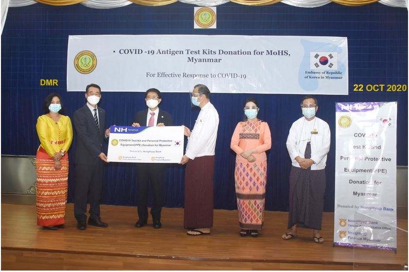 ယနေ့ လှူဒါန်းပွဲတွင် လတ်တလော အသက်ရှူလမ်းကြောင်းဆိုင်ရာ ကိုဗစ်-၁၉ ရောဂါ ကာကွယ်နိုင်ရန်အတွက် ကျန်းမာရေးနှင့် အားကစားဝန်ကြီးဌာနသို့ Shinhan Bank က အမေရိကန် ဒေါ်လာ ၇၀၀၀ နှင့် ညီမျှသော Covid-19 Antigen Test Kits (၁၀၀၀) ၊ Shwe Daehan Motors Co., Ltd က အမေရိကန် ဒေါ်လာ ၇၀၀၀ နှင့် ညီမျှသော Covid-19 Antigen Test Kits (၁၀၀၀) နှင့်  NongHyup Bank and NongHyup Finance Myanmar က အမေရိကန်ဒေါ်လာ ၁၅၀၀၀ နှင့် ညီမျှသော COVID-19 Antigen Test Kits (၂၅၀၀) နှင့် ငွေကျပ် ၁၈၅ သိန်းနှင့်ညီမျှသော PPE အစုံ (၁၀၀၀)ကို လှူဒါန်းခဲ့ခြင်းဖြစ်ကြောင်း သိရသည်။