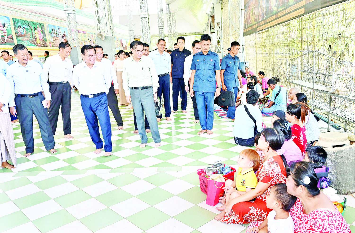 ထို့နောက် နိုင်ငံတော်လုံခြုံရေးနှင့်အေးချမ်းသာယာရေးကော်မရှင်ဥက္ကဋ္ဌက ဧည့်သည်တော်မှတ်တမ်းစာအုပ်တွင် လက်မှတ်ရေးထိုးပြီး ဘက်စုံအလှူငွေများ ပေးအပ်လှူဒါန်းရာ တာဝန်ရှိသူများက လက်ခံရယူ၍ ဓမ္မလက်ဆောင် ပြန်လည်ပေးအပ်သည်။