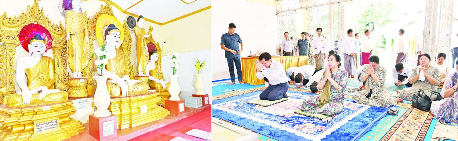 ဆက်လက်ပြီး နိုင်ငံတော်လုံခြုံရေးနှင့်အေးချမ်းသာယာရေးကော်မရှင်ဥက္ကဋ္ဌနှင့် ဇနီးနှင့်အဖွဲ့ဝင်များသည် “ရှင်ပင်သာလျောင်း” ခေါ် “ရွှေသာလျောင်း” ရုပ်ပွားတော်မြတ်ကြီးအား သွားရောက်ဖူးမြော်ကြည်ညိုပြီး ပန်း၊ ရေချမ်း၊ ဆီမီးများ ကပ်လှူပူဇော်သည်။