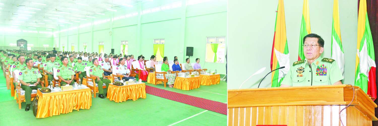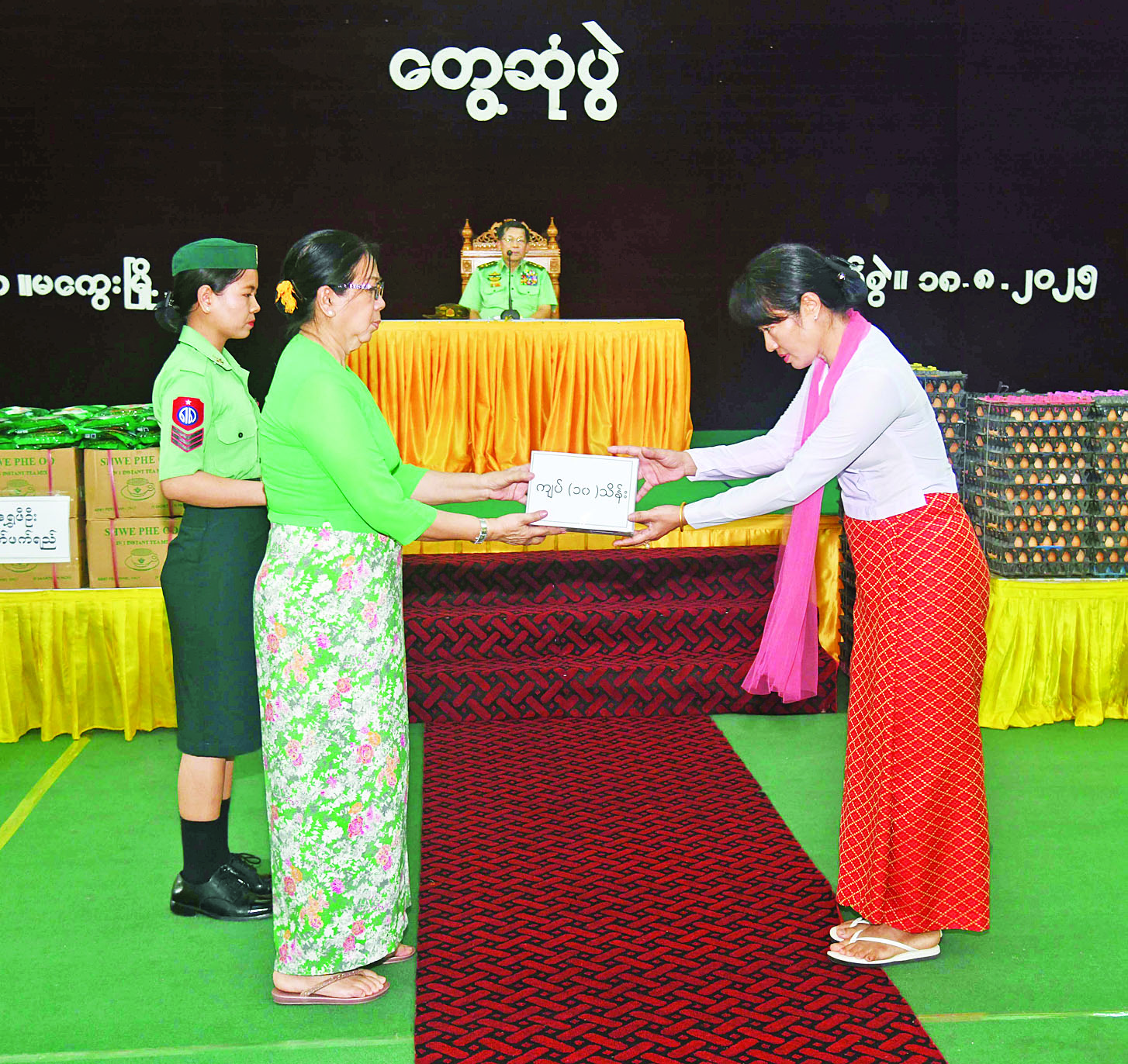 ထို့နောက် နိုင်ငံတော်လုံခြုံရေးနှင့်အေးချမ်းသာယာရေးကော်မရှင်ဥက္ကဋ္ဌ တပ်မတော်ကာကွယ်ရေးဦးစီးချုပ်က တပ်နယ်မှ အရာရှိ၊ စစ်သည်၊ မိသားစုများအတွက် စားသောက်ဖွယ်ရာပစ္စည်းများကိုပေးအပ်ရာ တပ်နယ်မှူးကလည်းကောင်း၊ နိုင်ငံတော်လုံခြုံရေးနှင့် အေးချမ်းသာယာရေးကော်မရှင်ဥက္ကဋ္ဌ တပ်မတော်ကာကွယ်ရေးဦးစီးချုပ်၏ဇနီးက တပ်နယ် မိခင်နှင့် ကလေးစောင့်ရှောက်ရေးအသင်းအတွက် ချီးမြှင့်ငွေများကိုပေးအပ်ရာ တပ်နယ်မှူး၏ ဇနီးကလည်းကောင်း လက်ခံရယူကြသည်။