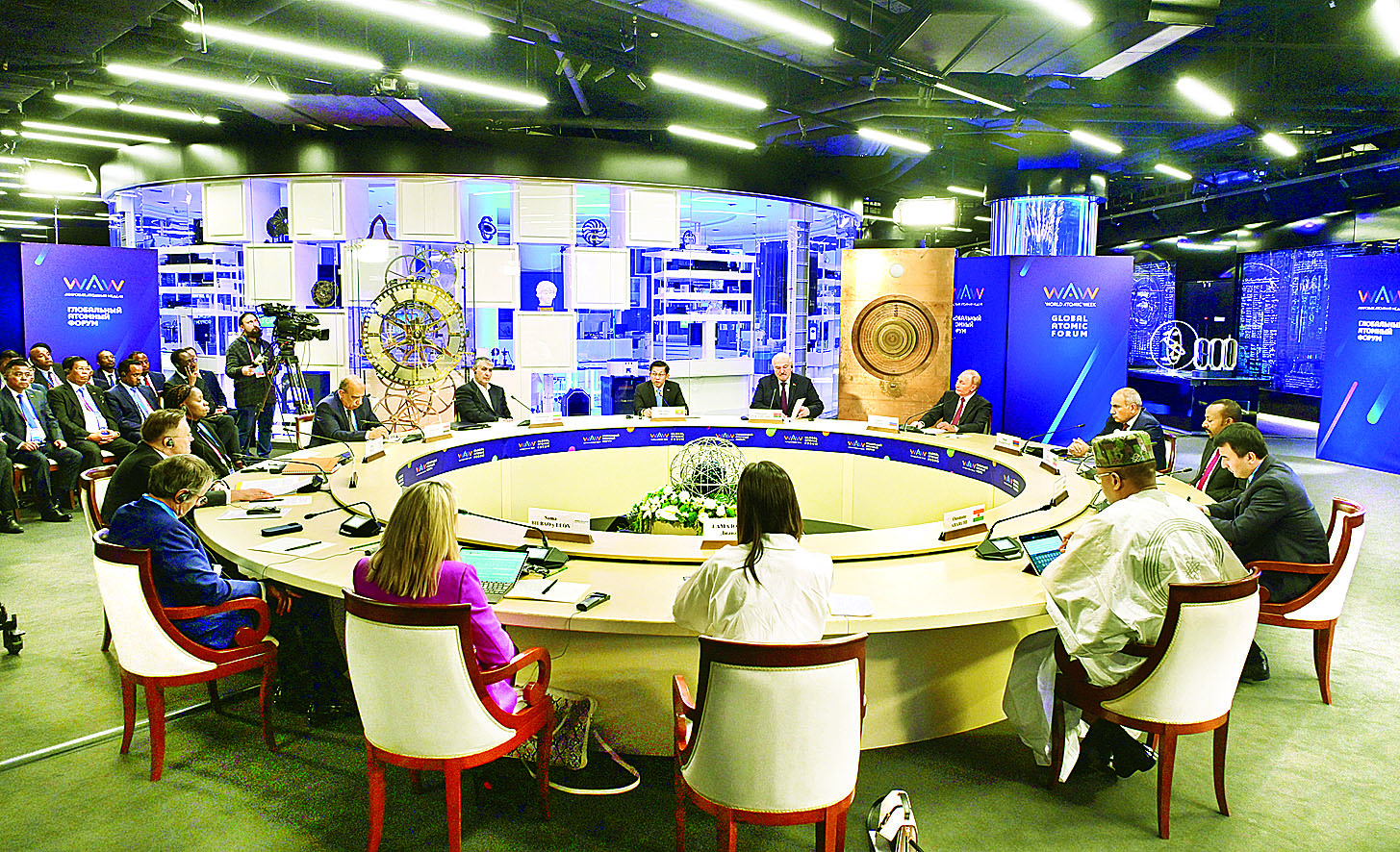 “ကမ္ဘာ့အဏုမြူ သီတင်းပတ်ဖိုရမ်- ၂၀၂၅ (World Atomic Week forum 2025)” ကို ယနေ့တွင် ရုရှားဖက်ဒရေးရှင်းနိုင်ငံမော်စကိုမြို့ရှိ Atom Museum ၌ ကျင်းပပြုလုပ်ရာ ပြည်ထောင်စုသမ္မတ မြန်မာနိုင်ငံတော်ယာယီသမ္မတ နိုင်ငံတော်လုံခြုံရေးနှင့်အေးချမ်းသာယာရေးကော်မရှင်ဥက္ကဋ္ဌ ဗိုလ်ချုပ်မှူးကြီးမင်းအောင်လှိုင်သည် “နည်းပညာသစ်မွေးဖွားခြင်းမှ ကမ္ဘာသစ်အမြင်ဆီသို့ (From a New Technological Rollout to a New Worldview)” ခေါင်းစဉ်ဖြင့်ပြုလုပ်သည့် မျက်နှာစုံညီ ထိပ်သီးအစည်းအဝေးသို့ ပါဝင်တက်ရောက်ဆွေးနွေးသည်။