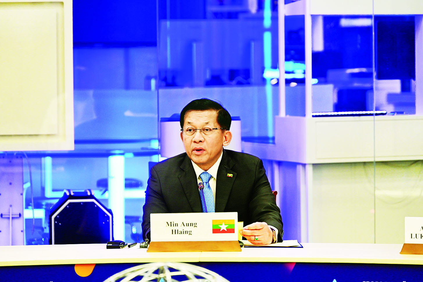 ပြည်ထောင်စုသမ္မတမြန်မာနိုင်ငံတော် ယာယီသမ္မတ နိုင်ငံတော်လုံခြုံရေးနှင့် အေးချမ်းသာယာရေးကော်မရှင်ဥက္ကဋ္ဌ ဗိုလ်ချုပ်မှူးကြီး မင်းအောင်လှိုင် ရုရှားဖက်ဒရေးရှင်းနိုင်ငံ မော်စကိုမြို့တွင်ကျင်းပပြုလုပ်သည့် “ကမ္ဘာ့အဏုမြူသီတင်းပတ်ဖိုရမ် -၂၀၂၅ (World Atomic Week forum 2025)” ၏ မျက်နှာစုံညီ ထိပ်သီးအစည်းအဝေးသို့ ပါဝင်တက်ရောက်