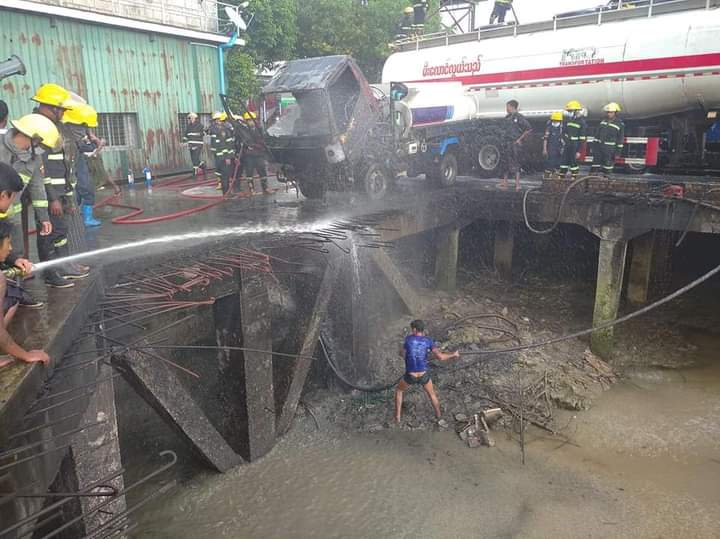 ရန်ကုန်တိုင်းဒေသကြီး၊ မြောက်ပိုင်းခရိုင်၊ အင်းစိန်မြို့နယ်၊ ကမ်းနားအနောက်ရပ်ကွက်၊ ရွှေဥဒေါင်း လမ်း၊ ရွှေတောင်ရေခဲစက်ဝန်းတွင် ယမန်နေ့ ညနေ (၃:၅၅) နာရီက ယာဉ်မောင်း ဟန်လင်းအောင်၊ (၃၈)နှစ်၏ MDY-2D/---- NISSAN(UD) (အပြာရောင်)၊ ၂၂ ဘီ ဂါလန်(၂)သိန်းခန့်ရှိ ဂျက်တီမှ ဆိပ်ခံတံတားပေါ်ရှိ ဂါလန် (၇၅၀၀)ဆံ့ ဆီဘောက်ဆာယာဉ်ပေါ်သို့ ဆီလှယ်ရာမှ မီးလောင်မှု ဖြစ်ပွား ခဲ့ကြောင်း သိရသည်။