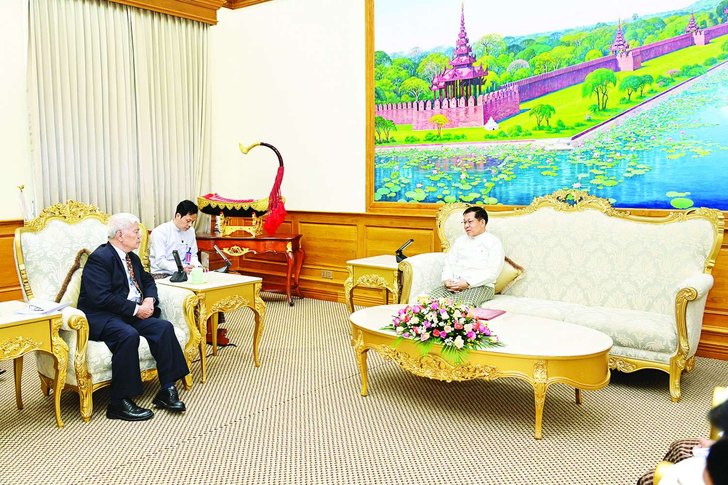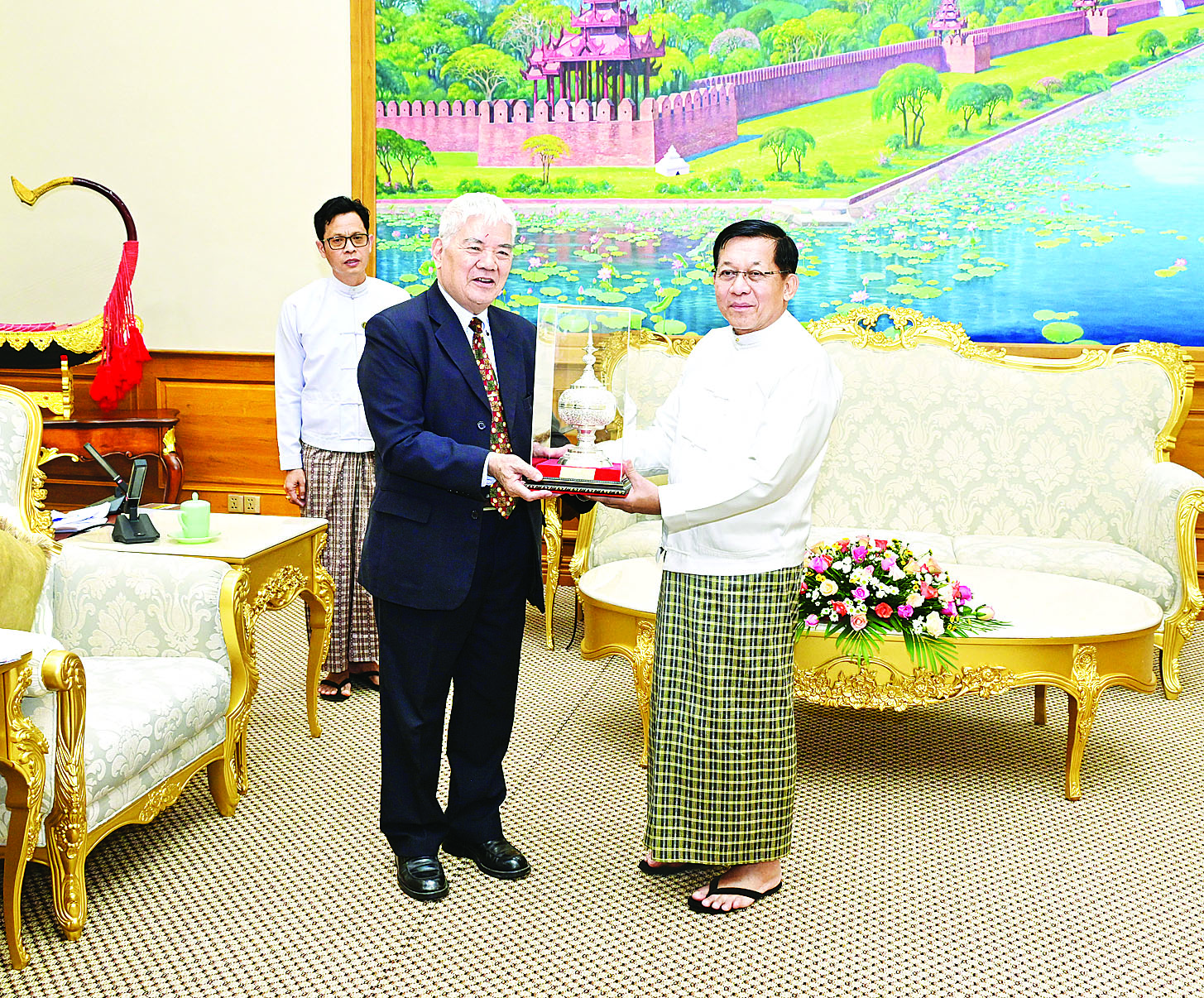 ပြည်ထောင်စုသမ္မတမြန်မာနိုင်ငံတော် ယာယီသမ္မတ နိုင်ငံတော်လုံခြုံရေးနှင့်အေးချမ်းသာယာရေး ကော်မရှင်ဥက္ကဋ္ဌ ဗိုလ်ချုပ်မှူးကြီး မင်းအောင်လှိုင်ထံသို့ ဗီယက်နမ်- မြန်မာ ချစ်ကြည်ရေးအသင်းဥက္ကဋ္ဌ Mr. Chu Cong Phung ဦးဆောင်သော ကိုယ်စားလှယ်အဖွဲ့က ယနေ့ နံနက်ပိုင်းတွင် လာရောက်ဂါရဝပြုတွေ့ဆုံသည်။
