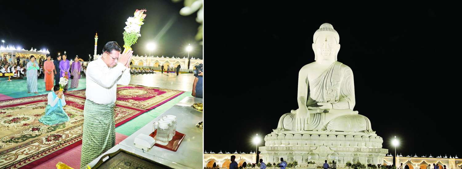 ယင်းနောက် နိုင်ငံတော်ယာယီသမ္မတ နိုင်ငံတော်လုံခြုံရေးနှင့်အေးချမ်းသာယာရေးကော်မရှင်ဥက္ကဋ္ဌ နှင့် ဇနီးတို့သည် မာရဝိဇယဗုဒ္ဓရုပ်ပွားတော်မြတ်ကြီးအား ဖူးမြော်ကြည်ညိုကာ ပန်း၊ ရေချမ်းနှင့် ဆီမီးများ ကပ်လှူပူဇော်ပြီး မာရဝိဇယဗုဒ္ဓရုပ်ပွားတော်မြတ်ကြီး တန်ဆောင်တိုင်မီးထွန်းပွဲတော် ဖွင့်ပွဲအခမ်းအနားသို့ တက်ရောက်လာကြသူများနှင့်အတူ ဆီမီးများကို အတူတကွ ထွန်းညှိပူဇော်ကြသည်။