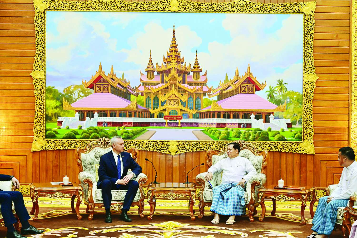 ပြည်ထောင်စုသမ္မတမြန်မာနိုင်ငံတော်ယာယီသမ္မတ နိုင်ငံတော်လုံခြုံရေးနှင့်အေးချမ်းသာယာရေးကော်မရှင်ဥက္ကဋ္ဌ ဗိုလ်ချုပ်မှူးကြီး မင်းအောင်လှိုင်ထံသို့ ရုရှားဖက်ဒရေးရှင်းနိုင်ငံ နိုဗိုစီဗစ်ဒေသအုပ်ချုပ်ရေးမှူး H.E. Mr. Andrey Aleksandrovich Travnikov ဦးဆောင်သော ကိုယ်စားလှယ်အဖွဲ့က ယနေ့နံနက်ပိုင်းတွင် လာရောက်ဂါရဝပြုတွေ့ဆုံသည်။