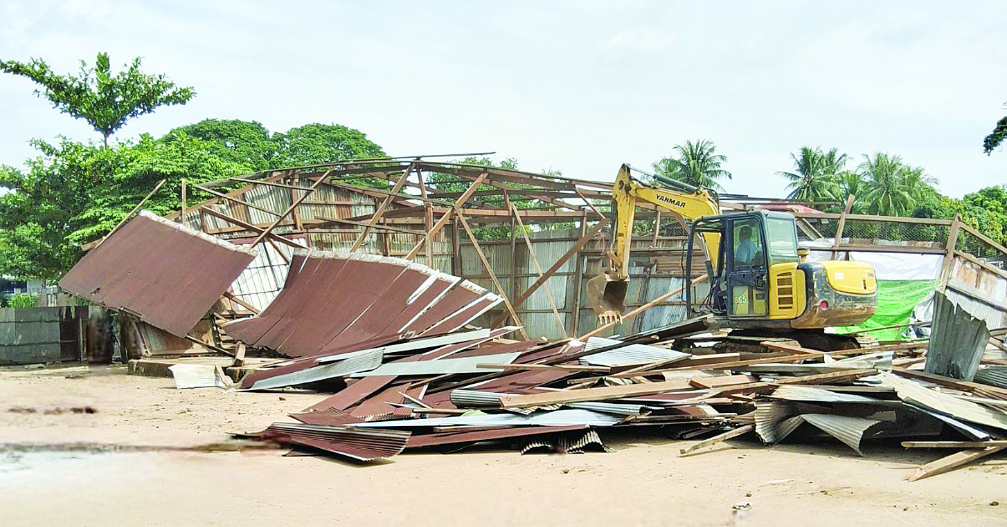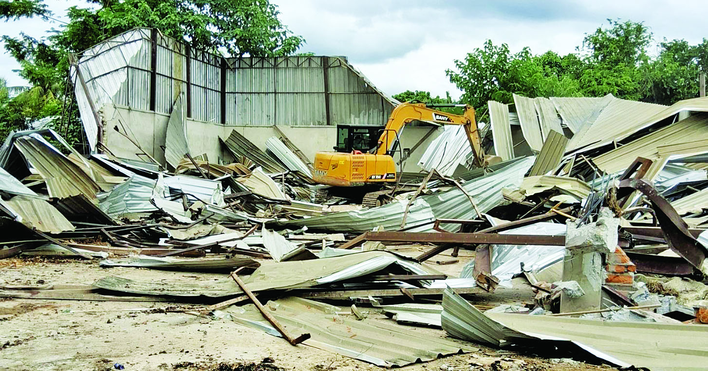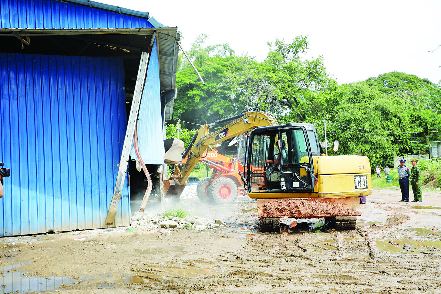ထိုသို့ ဖျက်ဆီးရှင်းလင်းခြင်းလုပ်ငန်းများ ဆောင်ရွက်ရာတွင် လုံခြုံရေးအဖွဲ့နှင့် ဖယ်ရှားရှင်းလင်းရေးအဖွဲ့ဝင်များသည် ယနေ့နံနက်ပိုင်းတွင် စက်၊ ယာဉ်၊ ယန္တရားများနှင့်အတူ မြဝတီမြို့ အမှတ် (၅) ရပ်ကွက်ရှိ ၃၅ ဂိတ် ဒေသအခေါ် အောင်ပါဝါဂိတ်-၂ ကို သွားရောက်စစ်ဆေးပြီး အလျားပေ ၁၂၀၊ အနံပေ ၆၀၊ အမြင့် ၂၅ ပေရှိ သံဖရိန်၊ အုတ်တက်၊ သွပ်မိုးသွပ်ကာ ပစ္စည်းသိုလှောင်ရုံအား ဖယ်ရှားရှင်းလင်းခြင်းလုပ်ငန်းကို ဆောင်ရွက်ကြသည်။