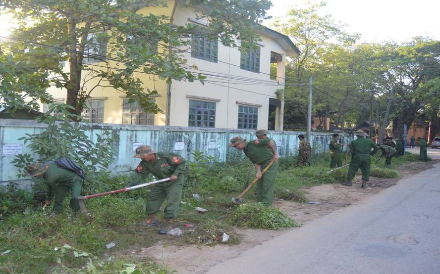ထိုသို့ ဆောင်ရွက်ပေးလျက်ရှိရာ ယနေ့တွင် ရှမ်းပြည်နယ် (မြောက်ပိုင်း) လားရှိုးမြို့နယ်၊ ရန်ကုန်တိုင်းဒေသကြီး၊ စမ်းချောင်းမြို့နယ်အပါအဝင် မြို့နယ် ၁၆ မြို့နယ်နှင့် ပဲခူးတိုင်းဒေသကြီး၊ တောင်ငူမြို့နယ်တို့၌ နယ်မြေခံတပ်မတော်သားများ၊ မြန်မာနိုင်ငံရဲတပ်ဖွဲ့ဝင်များ၊ မီးသတ်တပ်ဖွဲ့ဝင်များ၊ စစ်မှုထမ်းဟောင်းအဖွဲ့ဝင်များ၊ ဌာနဆိုင်ရာဝန်ထမ်းများ၊ လူမှုရေးအသင်းအဖွဲ့များနှင့် ဒေသခံပြည်သူများက အခြေခံပညာကျောင်းများအတွင်း/အပြင်ရှိ ချုံနွယ်ပေါင်းမြက်များ ခုတ်ထွင်ရှင်းလင်းခြင်း၊ အမှိုက်များ ရှင်းလင်းခြင်း၊ ရေစီးရေလာကောင်းမွန်စေရေး ရေနုတ်မြောင်းများ တူးဖော်ပေးခြင်း၊ ရေကန်များတွင် အဘိတ်ဆေးများခတ်ပေးခြင်း၊ ခြင်ခိုအောင်းနိုင်သည့်နေရာများအား ခြင်ဆေးဖျန်းခြင်းနှင့် ကျန်းမာရေးအသိပညာပေးလက်ကမ်းစာစောင်များ ဖြန့်ဝေပေးခြင်းများကို စုပေါင်းဆောင်ရွက်ကြသည်။