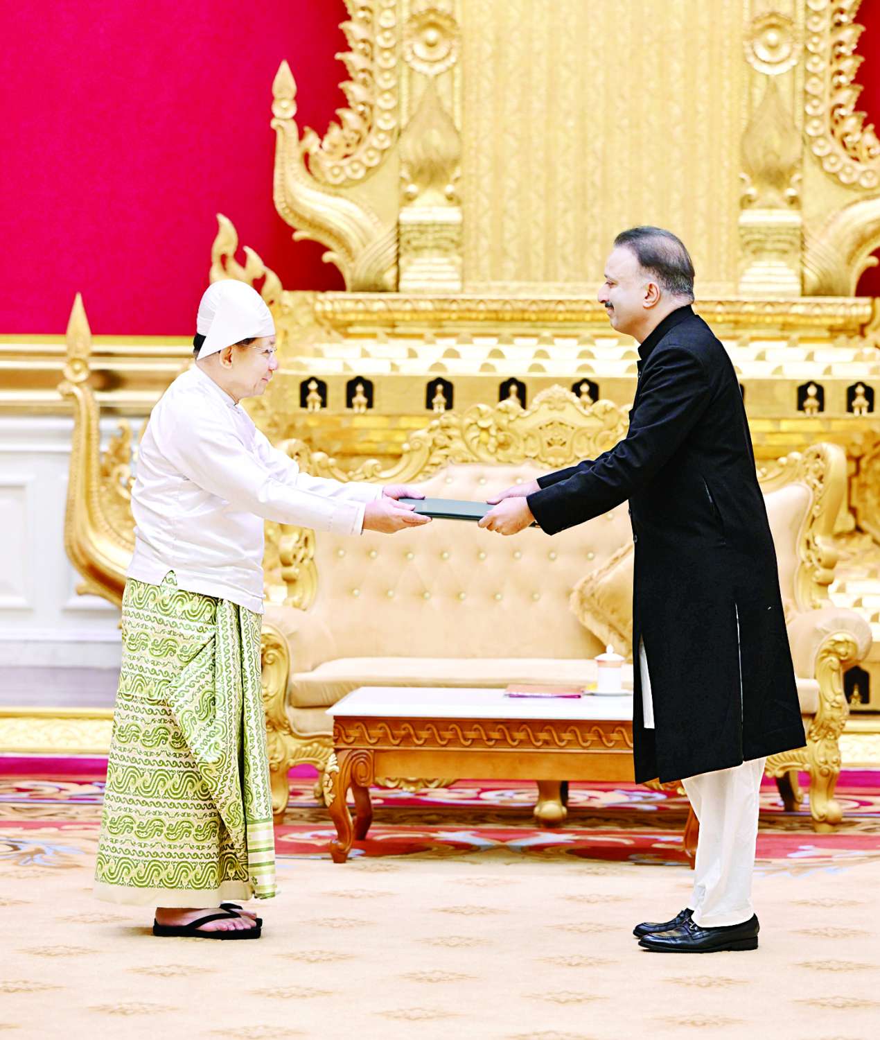ပြည်ထောင်စုသမ္မတ မြန်မာနိုင်ငံတော်ယာယီသမ္မတ နိုင်ငံတော်လုံခြုံရေးနှင့် အေးချမ်းသာယာရေးကော်မရှင်ဥက္ကဋ္ဌ ဗိုလ်ချုပ်မှူးကြီး မင်းအောင်လှိုင်ထံ မြန်မာနိုင်ငံဆိုင်ရာ ပါကစ္စတန်နိုင်ငံသံအမတ်ကြီးက သံအမတ်ခန့်အပ်လွှာပေးအပ်