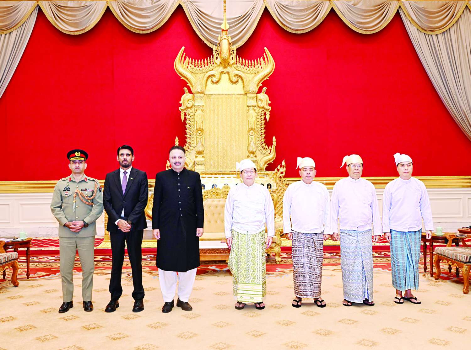 တွေ့ဆုံပွဲအပြီးတွင် နိုင်ငံတော်ယာယီသမ္မတ နိုင်ငံတော်လုံခြုံရေးနှင့်အေးချမ်းသာယာရေးကော်မရှင်ဥက္ကဋ္ဌနှင့် မြန်မာနိုင်ငံဆိုင်ရာ ပါကစ္စတန်နိုင်ငံသံအမတ်ကြီးတို့သည် စုပေါင်းမှတ်တမ်းတင်ဓာတ်ပုံရိုက်ကြသည်။