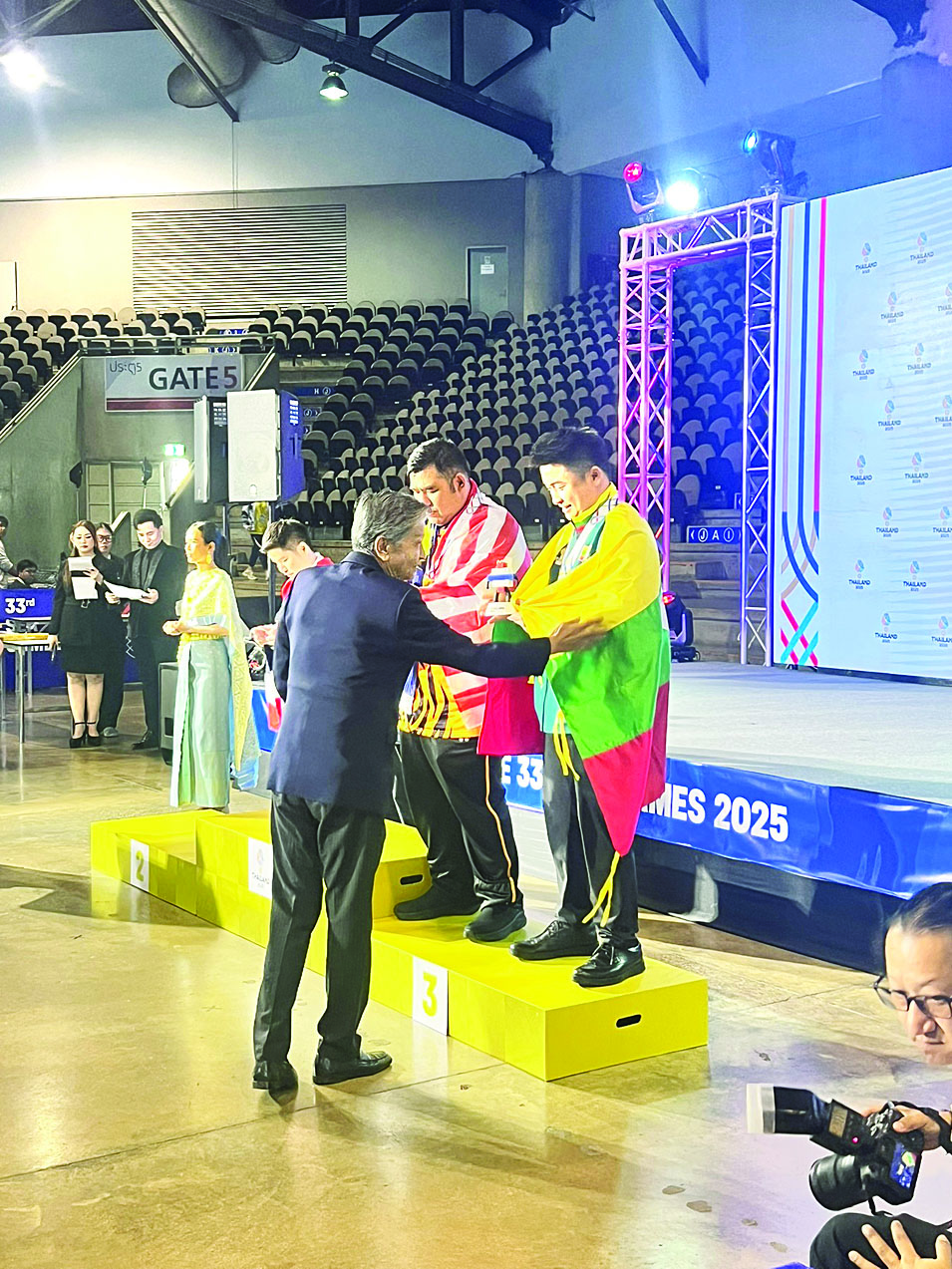 (၃၃)ကြိမ်မြောက် အရှေ့တောင်အာရှအားကစားပြိုင်ပွဲကို ထိုင်းနိုင်ငံ ဘန်ကောက်နှင့် ချွန်ဘူရီမြို့များရှိ သက်ဆိုင်ရာအားကစား ကွင်း၊ အားကစားရုံများ၌ ကျင်းပပြုလုပ်လျက်ရှိပြီး မြန်မာအသင်းအနေဖြင့် ပိုက်ကျော်ခြင်း၊ စကွက်ရ်၊ စက်ဘီး၊ သေနတ်ပစ်၊ စားပွဲတင်တင်းနစ်၊ ကဘာဒီ၊ ခရစ်ကတ်၊ လက်ဝှေ့၊ ဘိလိယက်နှင့် စနူကာ၊ ဖူဆယ်၊ E-sports၊ အပြည်ပြည်ဆိုင်ရာလှေ၊ မြင်းစီး၊ နပန်းနှင့် ရွက်လှေပြိုင်ပွဲများ၌ ဝင်ရောက်ယှဉ်ပြိုင်ခဲ့ရာ ယနေ့နံနက်ပိုင်းတွင် မြန်မာနိုင်ငံ အိုလံပစ်ကော်မတီ အထွေထွေအတွင်းရေးမှူး၊ အားကစားနှင့်လူငယ်ရေးရာဝန်ကြီးဌာန ဒုတိယဝန်ကြီး ဦးထိန်လင်း၊ ပို့ဆောင်ရေးနှင့်ဆက်သွယ်ရေးဝန်ကြီးဌာနဒုတိယဝန်ကြီး ဦးအောင်ကျော်ထွန်း၊ ထိုင်းနိုင်ငံဆိုင်ရာ ပြည်ထောင်စုသမ္မတ မြန်မာနိုင်ငံသံအမတ်ကြီး ဦးဇော်ဇော်စိုးနှင့်၊ စစ်သံမှူးကြီး ဗိုလ်မှူးချုပ်ဝင်းသူလင်းနှင့် ဇနီး၊ မြန်မာအားကစားအဖွဲ့ ခေါင်းဆောင်၊ အားကစားနှင့် ကာယပညာဦးစီးဌာန ညွှန်ကြား ရေးမှူးချုပ်နှင့် အုပ်ချုပ်မှုအဖွဲ့ဝင်များ၊ မြန်မာအားကစားအဖွဲ့ချုပ် ဥက္ကဋ္ဌများနှင့် တာဝန်ရှိသူများ တက်ရောက်ကြည့်ရှုအားပေးကြသည်။