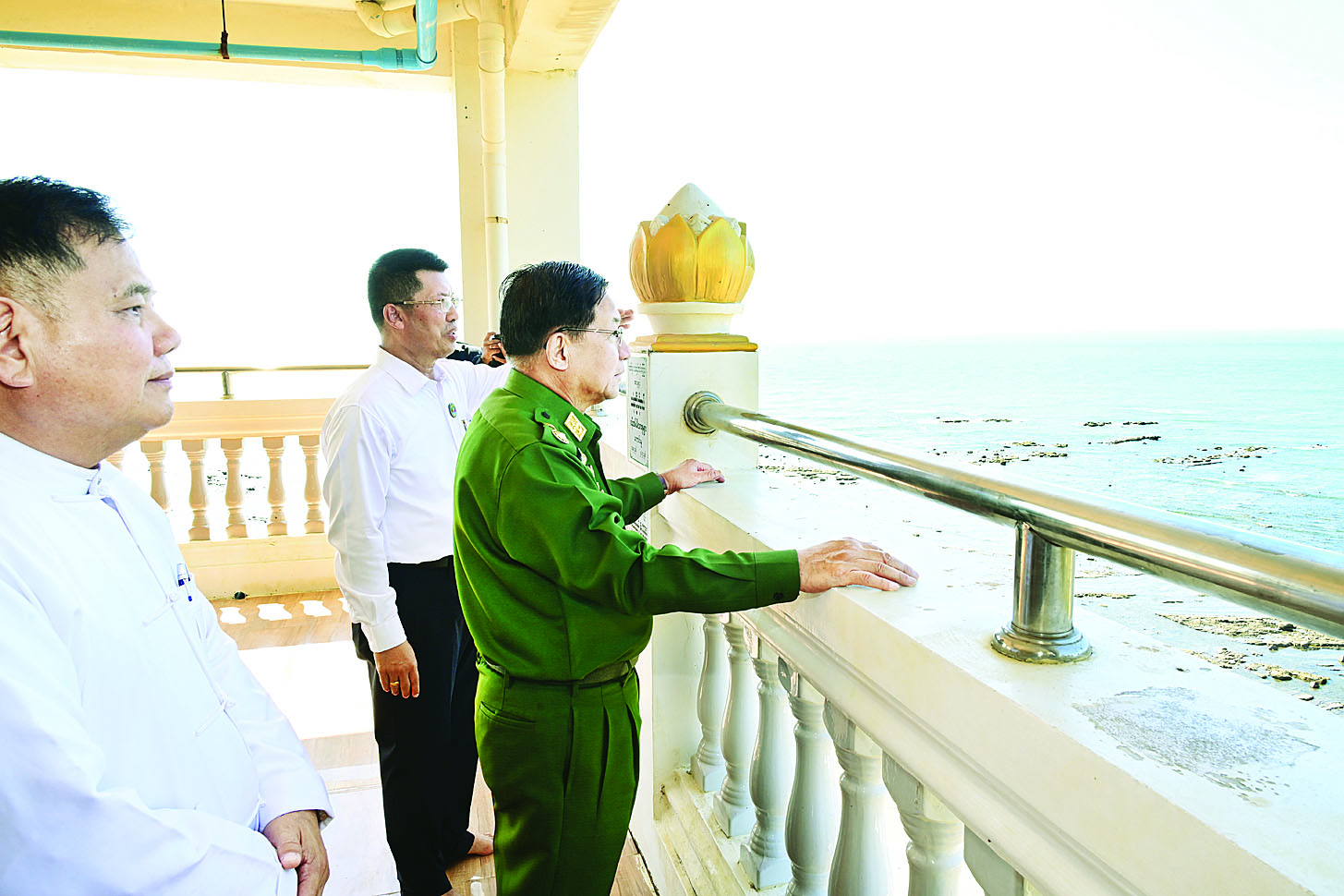 ယင်းနောက် နိုင်ငံတော်လုံခြုံရေးနှင့်အေးချမ်းသာယာရေးကော်မရှင်ဥက္ကဋ္ဌ တပ်မတော်ကာကွယ်ရေးဦးစီးချုပ်နှင့် အဖွဲ့ဝင်များသည် ဟိုင်းကြီးကျွန်းမြို့အတွင်း မော်တော်ယာဉ်များဖြင့် လှည့်လည်ကြည့်ရှုခဲ့ပြီး သမိုင်းဝင် မဟာမကုဋရံသီ ဆံတော်ရှင် မြတ်မော်တင်စေတီတော်မြတ်ကြီးသို့ရောက်ရှိကြရာ ဂေါပကအဖွဲ့ဝင်များနှင့် တာဝန်ရှိသူများက ကြိုဆိုနှုတ်ဆက်ကြသည်။