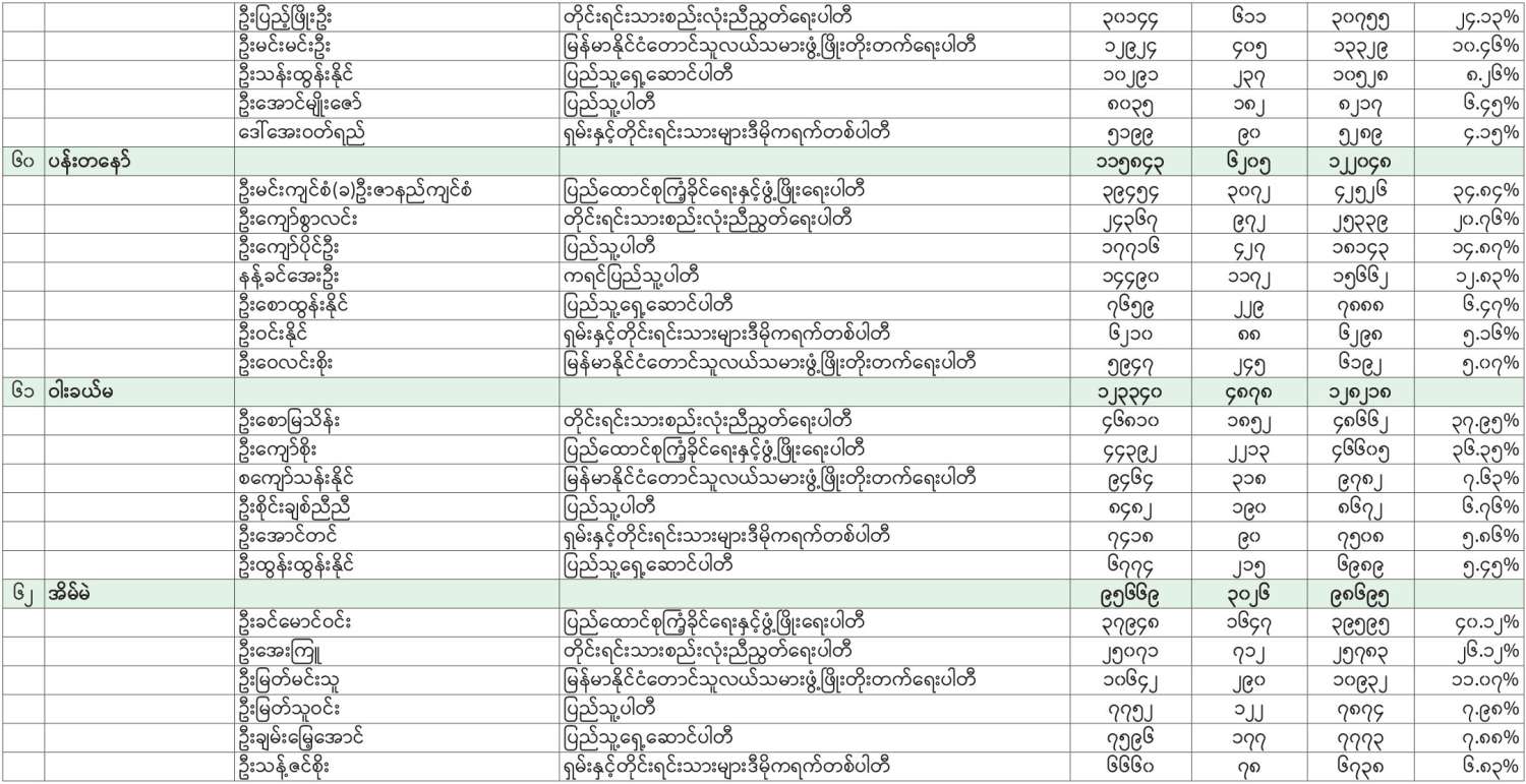 ၂၀၂၅ ခုနှစ် ပါတီစုံဒီမိုကရေစီအထွေထွေရွေးကောက်ပွဲ(အပိုင်း ၂) တိုင်းဒေသကြီးလွှတ်တော် သို့မဟုတ် ပြည်နယ်လွှတ်တော် ကိုယ်စားလှယ်လောင်းတစ်ဦးချင်း ဆန္ဒမဲရရှိမှုအခြေအနေ