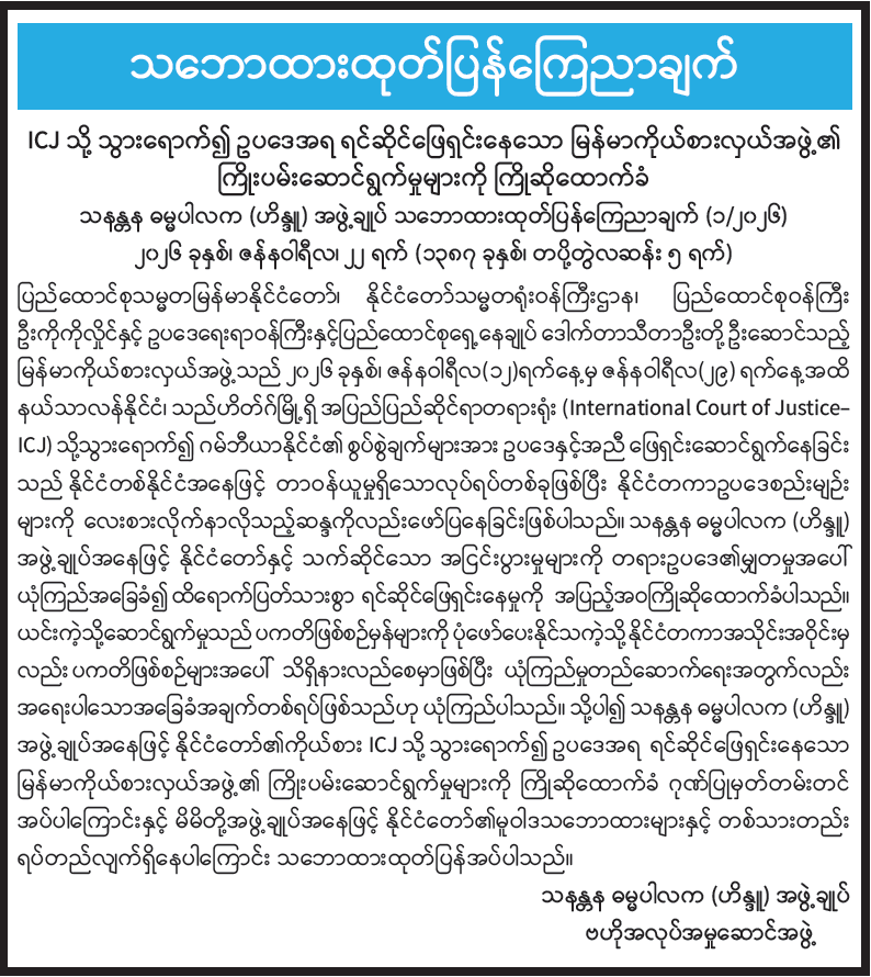နိုင်ငံတော်အစိုးရ၏ ကြေညာချက်များ