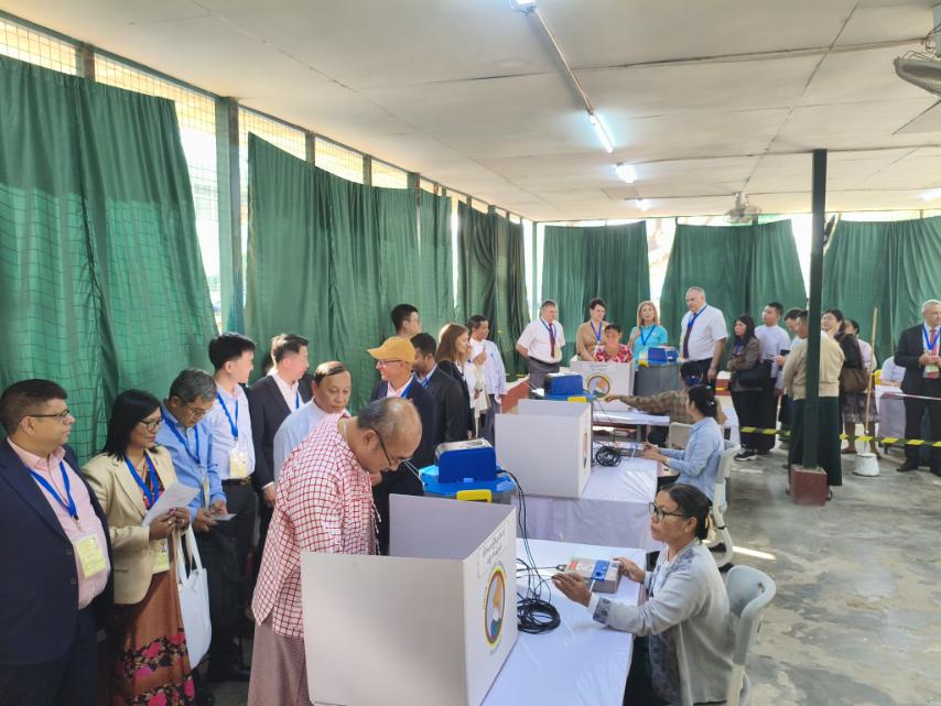 ရန်ကုန်တိုင်းဒေသကြီး ဗိုလ်တထောင်ခရိုင် သာကေတမြို့နယ်တွင် ၂၀၂၅ ခုနှစ်ပါတီစုံဒီမိုကရေစီအထွေထွေရွေးကောက်ပွဲအပိုင်း(၃)ကို ဇန်နဝါရီ(၂၅)ရက် နံနက်(၆)နာရီက စတင်ကျင်းပလျက်ရှိရာ ယနေ့နံနက်ပိုင်းက နိုင်ငံတကာရွေးကောက်ပွဲစောင့်ကြည့်လေ့လာရေးအဖွဲ့များ လာရောက်လေ့လာသည်။