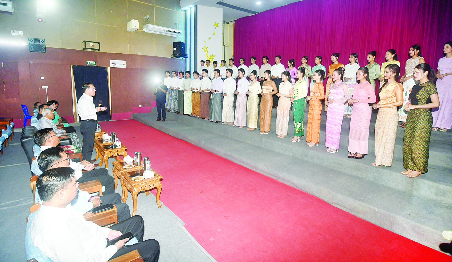 ပြည်ထောင်စုဝန်ကြီး ဦးမောင်မောင်အုန်း ၂၀၂၅ ခုနှစ် မြန်မာ့ရုပ်ရှင် ထူးချွန်ဆုချီးမြှင့်ပွဲ အခမ်းအနားတွင် ပါဝင်ဆောင်ရွက်နိုင်ရန် ရွေးချယ်ခံထားရသည့် ရွှေကြိုမောင်မယ်များနှင့် တွေ့ဆုံ