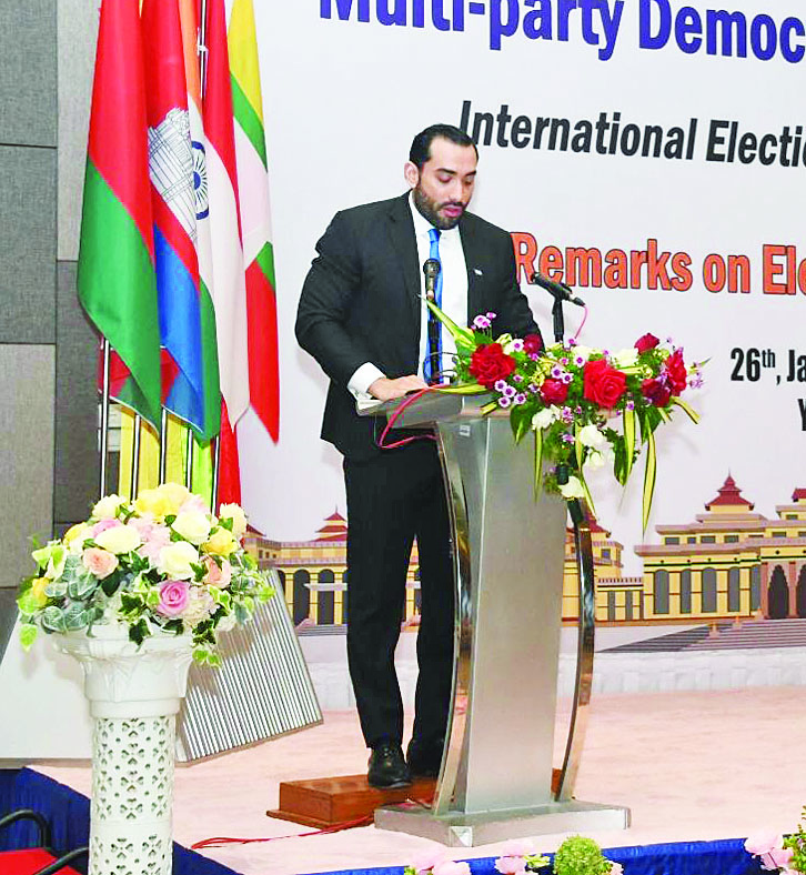 ရွေးကောက်ပွဲကျင်းပမှုဆိုတာဟာ အုပ်ချုပ်မှုလုပ်ငန်းစဉ်တစ်ခုသာ မဟုတ်ပါဘူးရှင်။ ရွေးကောက်ပွဲလုပ်ငန်းစဉ်ဆိုတာဟာ နိုင်ငံတစ်ခုရဲ့ဒီမိုကရေစီစံချိန်စံညွှန်းတွေနဲ့ ပြည်သူလူထုရဲ့ဆန္ဒ အပေါ်မှာ ကတိကဝတ်ပြုမှုကို အကောင်အထည် ဖော်ဆောင်ရွက်ပေးတာဖြစ်ပါတယ်။ ကျွန်မတို့ အနေနဲ့ အဲဒီရှုထောင့်ကနေ ပြောရမယ်ဆိုရင်တော့ ဒီကြီးမားတဲ့ အထွေထွေရွေးကောက်ပွဲမှာ ပြည်ထောင်စုရွေးကောက်ပွဲကော်မရှင်ရဲ့ စနစ်ကျစွာနဲ့ ကောင်းမွန်မှန်ကန်တဲ့ အရည်အချင်းတွေနဲ့ ခက်ခဲတဲ့အချိန်တွေ၊ ရှုပ်ထွေးတဲ့အချိန်တွေကြား ထဲကနေပြီး ရွေးကောက်ပွဲကို အောင်မြင်စွာ ကျင်းပ နိုင်ခဲ့တဲ့အတွက် ချီးကျူးဂုဏ်ယူလိုကြောင်း ပြောကြားလိုပါတယ်ရှင်။