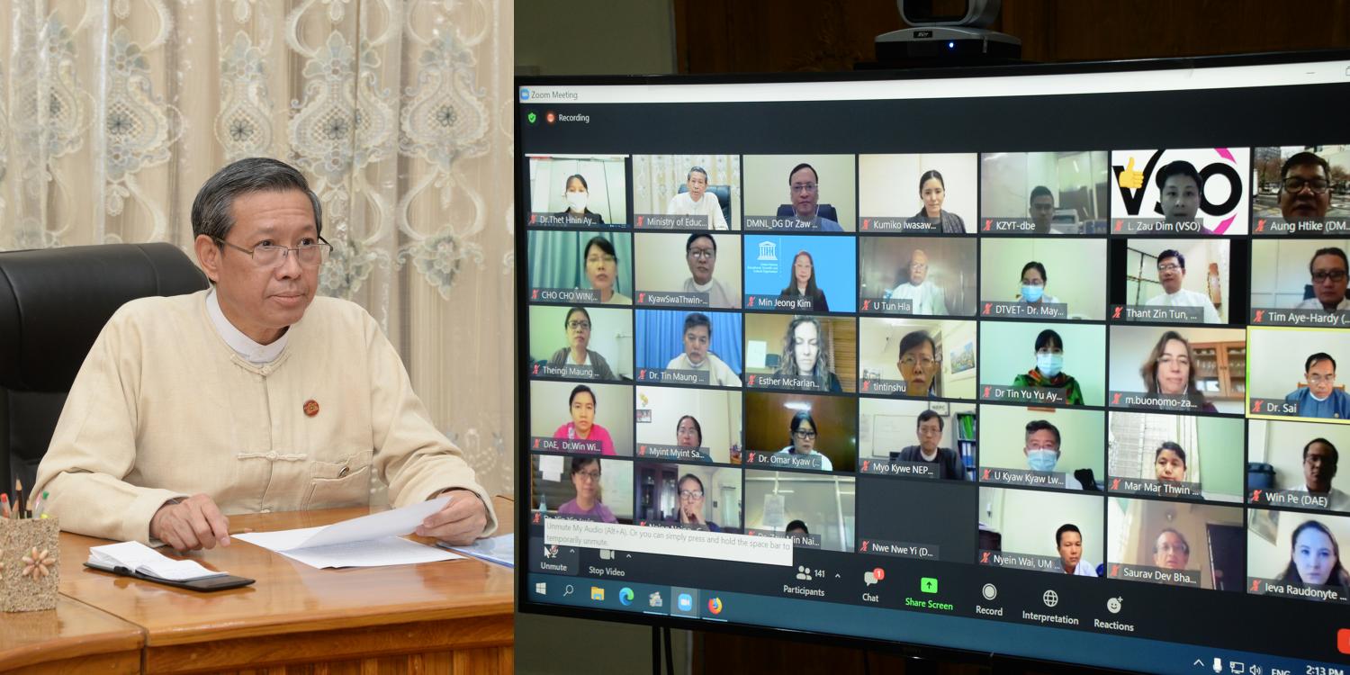 ပညာရေးကဏ္ဍလေ့လာသုံးသပ်ခြင်း (Education Sector Analysis) ဆိုင်ရာ အစည်းအဝေးကို ယနေ့မွန်းလွဲ ၂ နာရီ က ပညာရေးဝန်ကြီးဌာနနှင့် ယူနက်စကို-မြန်မာတို့ ပူးပေါင်း၍ အွန်လိုင်းမှ ကျင်းပသည်။