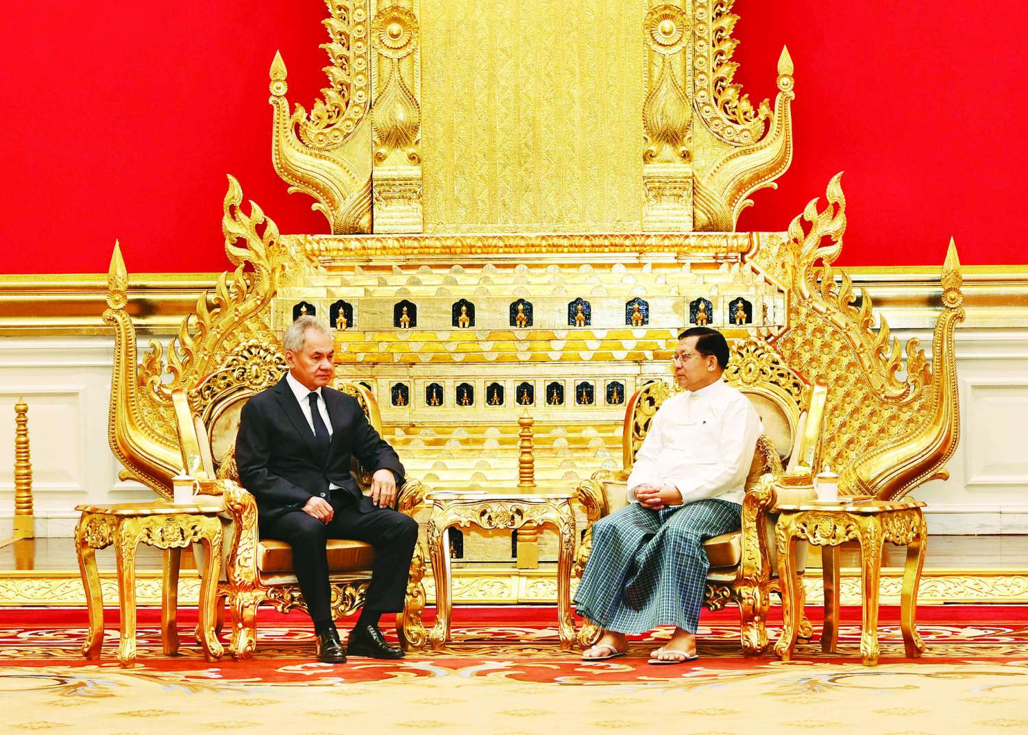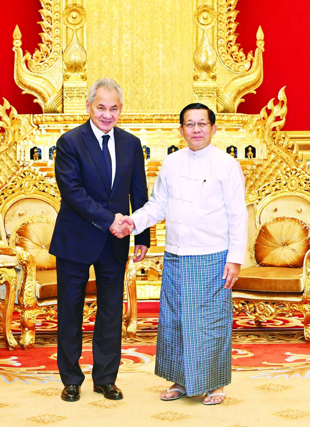 ပြည်ထောင်စုသမ္မတမြန်မာနိုင်ငံတော် ယာယီသမ္မတ နိုင်ငံတော်လုံခြုံရေးနှင့် အေးချမ်းသာယာရေးကော်မရှင်ဥက္ကဋ္ဌ ဗိုလ်ချုပ်မှူးကြီး မင်းအောင်လှိုင် ရုရှားဖက်ဒရေးရှင်းနိုင်ငံ လုံခြုံရေးကောင်စီအတွင်းရေးမှူး H.E.Mr. Sergey SHOIGU ဦးဆောင်သည့်ကိုယ်စားလှယ်အဖွဲ့အား လက်ခံတွေ့ဆုံ
