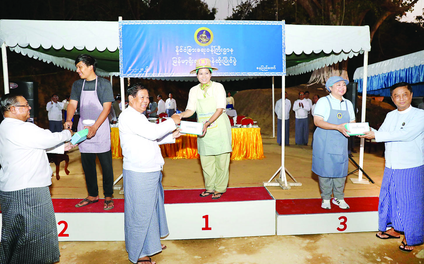 ထို့နောက် ပြည်ထောင်စုဝန်ကြီး၊ အမျိုးသားကာကွယ်ရေးနှင့်လုံခြုံရေးကောင်စီ ဗဟိုအကြံပေးအဖွဲ့ဝင်၊ အဂတိလိုက်စားမှုတိုက်ဖျက်ရေးကော်မရှင်ဥက္ကဋ္ဌ၊ ပြည်ထောင်စုရာထူးဝန်အဖွဲ့ဝင်၊ ဒုတိယဝန်ကြီးများ၊ အမြဲတမ်းအတွင်းဝန်နှင့် တာဝန်ရှိသူများက ပြိုင်ပွဲဝင်အသင်း ရှစ်သင်းတို့၏ ထမနဲထိုး ပြိုင်ပွဲ ယှဉ်ပြိုင်နေမှုများကို လိုက်လံကြည့်ရှုအားပေးပြီး ပြိုင်ပွဲတွင် ဆုရရှိသည့်အသင်းများကို ဆုများ ချီးမြှင့်ခဲ့ကြသည်။