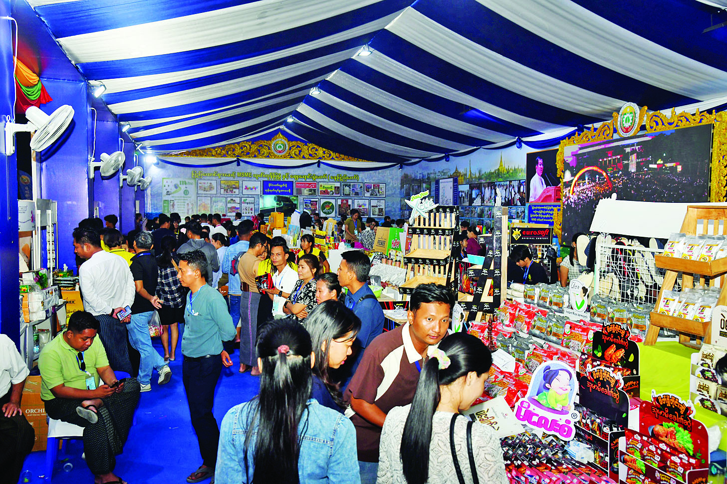 ပြည်ထောင်စုအဆင့် MSME ထုတ်ကုန်ပြပွဲနှင့် ဈေးရောင်းပွဲတော် ဒုတိယနေ့တွင် ဒေသခံပြည်သူအများအပြား လာရောက်ကြည့်ရှုလေ့လာ