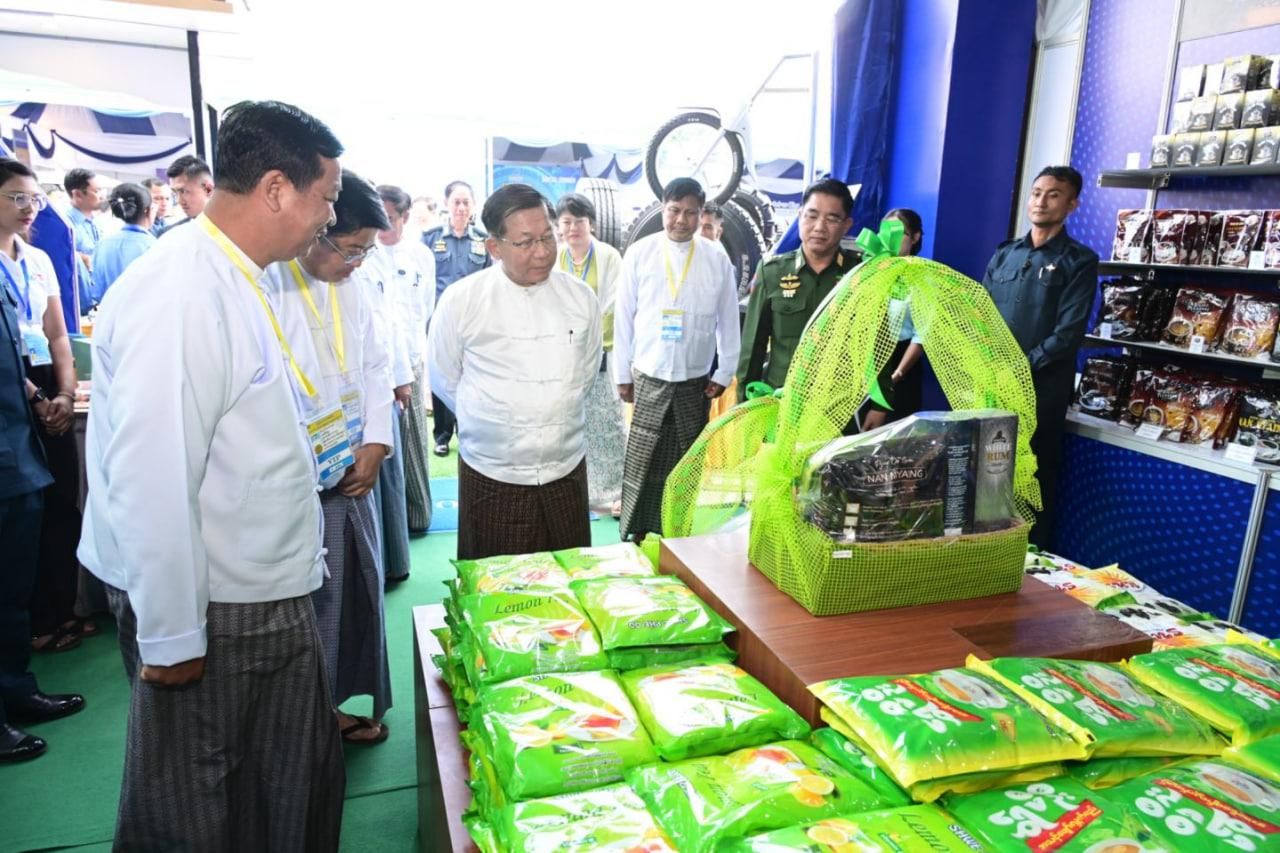 ထိုသို့လှည့်လည်ကြည့်ရှုရာတွင် နိုင်ငံတော်ယာယီသမ္မတ နိုင်ငံတော်လုံခြုံရေးနှင့်အေးချမ်းသာယာရေးကော်မရှင်ဥက္ကဋ္ဌနှင့် အဖွဲ့ဝင်များသည် ၂၀၂၆ ခုနှစ်၊ (၇၉) နှစ်မြောက် ပြည်ထောင်စုနေ့အထိမ်းအမှတ် ပြည်ထောင်စုအဆင့် MSME ထုတ်ကုန်ပြပွဲနှင့် ဈေးရောင်းပွဲတော်၌ ပါဝင်ခင်းကျင်းပြသထားသည့် စီးပွားရေးနှင့်ကူးသန်းရောင်းဝယ်ရေးဝန်ကြီးဌာန ပြည်ပဈေးကွက်ချိတ်ဆက်ရေးလုပ်ငန်းအဖွဲ့ပြခန်း၊ ပြည်တွင်းဈေးကွက်ချိတ်ဆက်ရေးလုပ်ငန်းအဖွဲ့ပြခန်း၊ ဝန်ကြီးဌာနများနှင့် ချိတ်ဆက်ရေးလုပ်ငန်းအဖွဲ့ပြခန်းများအတွင်း MSME ကုန်ထုတ်လုပ်ငန်းများဆောင်ရွက်လျက်ရှိသည့် လုပ်ငန်းရှင်များ၏ ပြည်တွင်းပြည်ပဈေးကွက်ရရှိရေး တွေ့ဆုံဆွေးနွေးချိတ်ဆက်ဆောင်ရွက်နေမှုများကို လှည့်လည်ကြည့်ရှုအားပေးကြသည်။