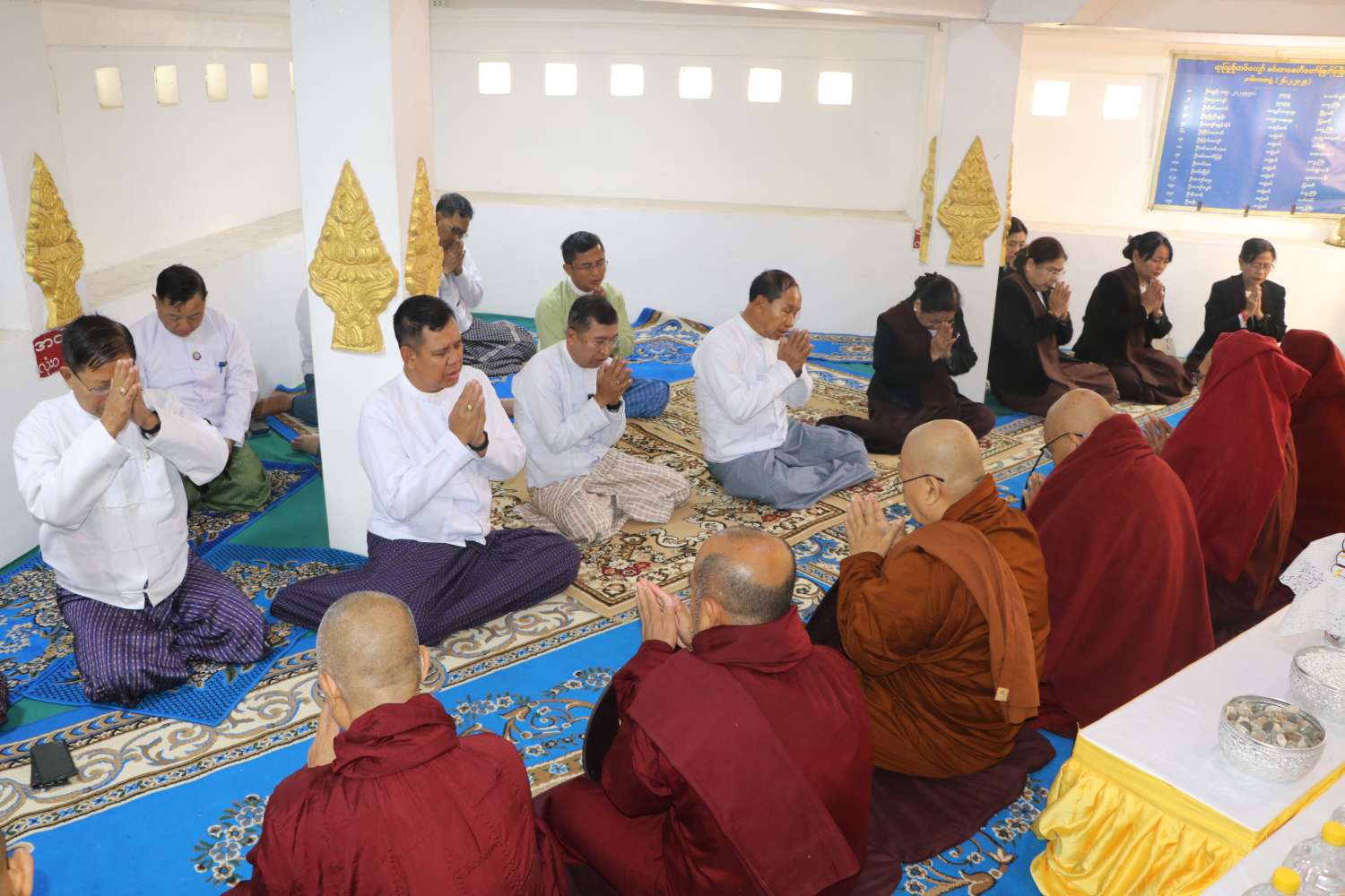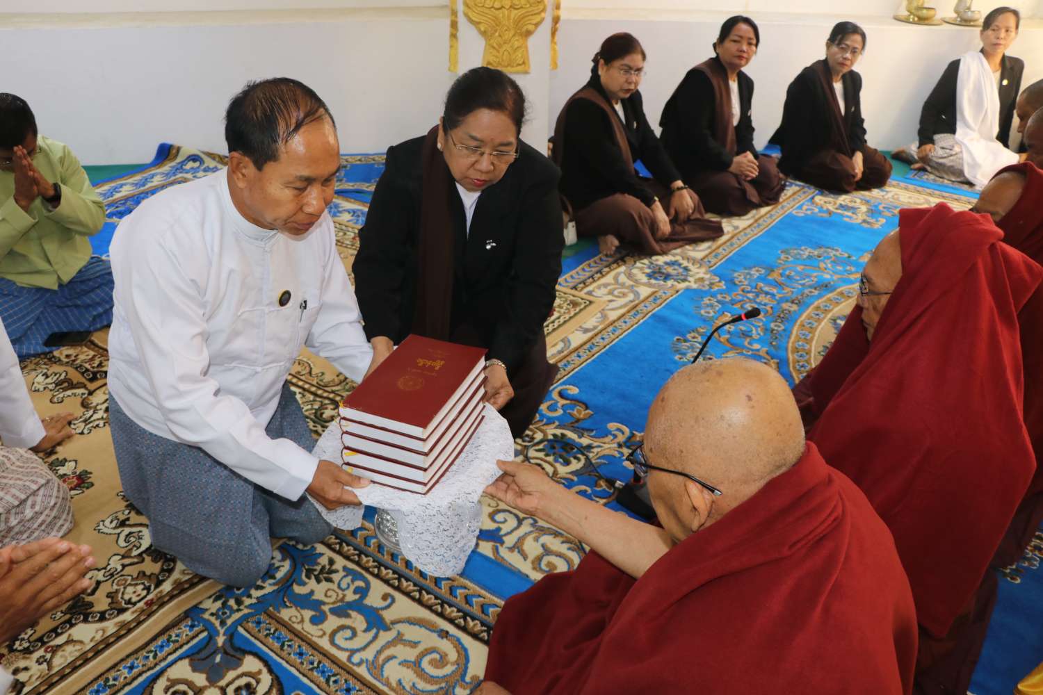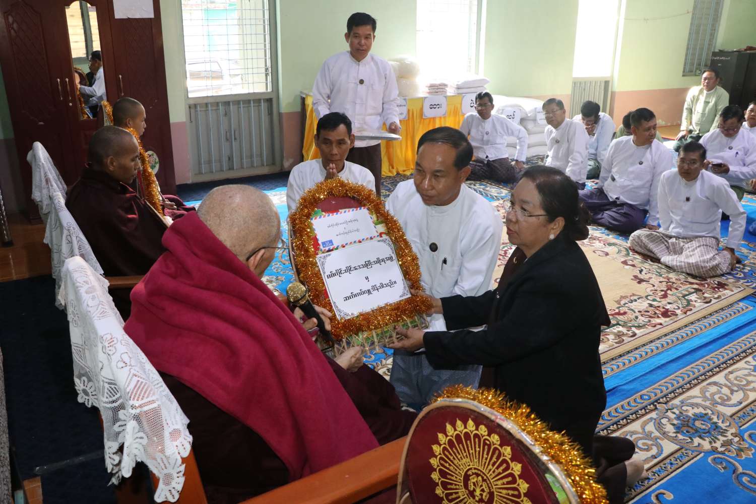 ထို့နောက် တိုင်းဒေသကြီး ဝန်ကြီးချုပ်နှင့် တာဝန်ရှိသူများသည် မုံရွာမြို့၊ ချမ်းမြ ဝတီရပ်ကွက်ရှိ မဟာဂန္တာရုံကျောင်းတိုက်ကြီးသို့ ရောက်ရှိရာ ပင့်သံဃာဆရာတော်ကြီးများထံ တိုင်းဒေသကြီး ဝန်ကြီးချုပ်နှင့်ဇနီး၊ တိုင်းဒေသကြီး တရားသူကြီးချုပ်နှင့်ဇနီး၊ တိုင်းဒေသကြီး အစိုးရအဖွဲ့ဝင်များနှင့် ဇနီးများမှ ဆွမ်းဆန်၊ ဆီ၊ ဆား၊ ပဲ အမယ်(၄)မျိုးတို့အား ဆက်ကပ်လှူဒါန်းကြပြီး တိုင်းဒေသကြီးဝန်ကြီးချုပ်က သာသနာရေးဆိုင်ရာများ လျှောက်ထားခဲ့သည်။