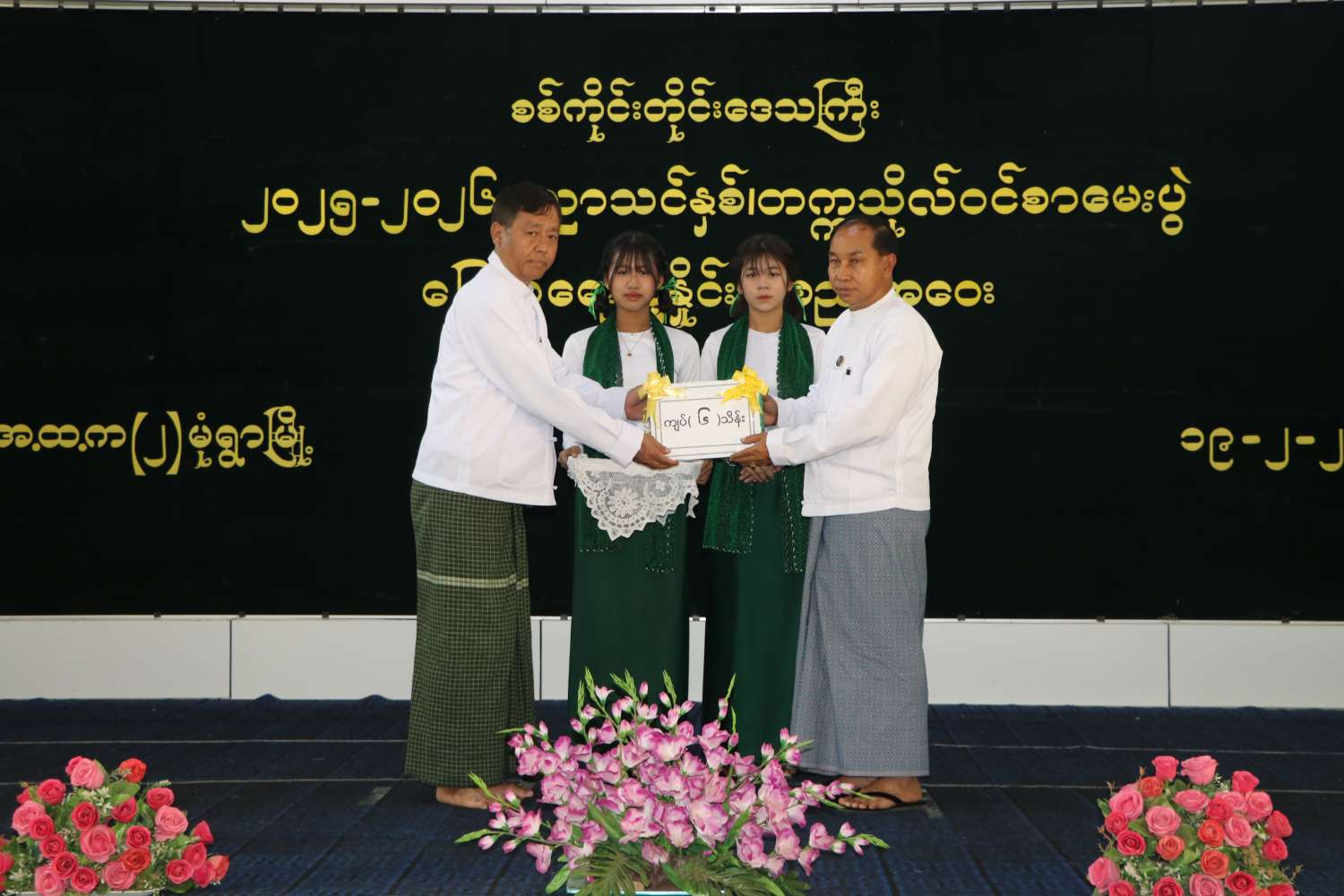 ဆက်လက်ပြီး တိုင်းဒေသကြီးဝန်ကြီးချုပ်က တိုင်းဒေသကြီး ပညာရေးမှူးရုံးမှ ညွှန်ကြားရေးမှူးထံ စာစစ်ဌာနများအတွက် ချီးမြှင့်ငွေများ ပေးအပ်ချီးမြှင့်သည်။