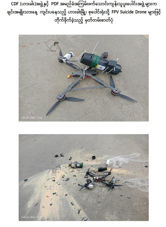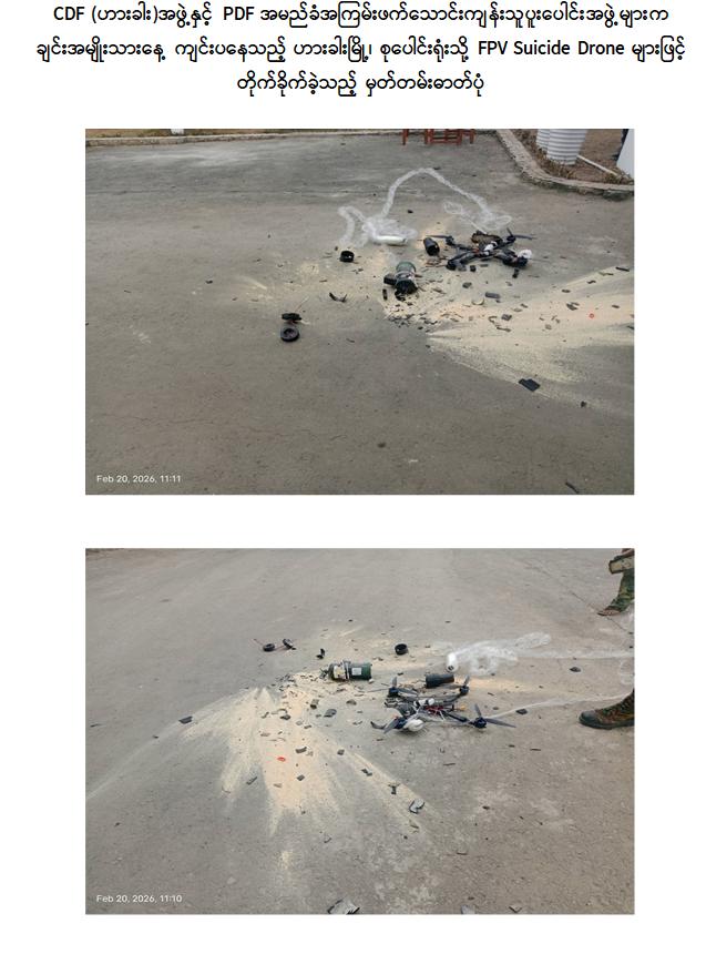 ချင်းအမျိုးသားနေ့ကျင်းပသည့်နေရာသို့ CDF(ဟားခါး)အဖွဲ့နှင့် PDF အမည်ခံ အကြမ်းဖက်သောင်းကျန်းသူပူးပေါင်းအဖွဲ့များက FPV suicide drone များဖြင့် တိုက်ခိုက်မှုအား လုံခြုံရေးတပ်ဖွဲ့များက ဟန့်တားနိုင်ခဲ့