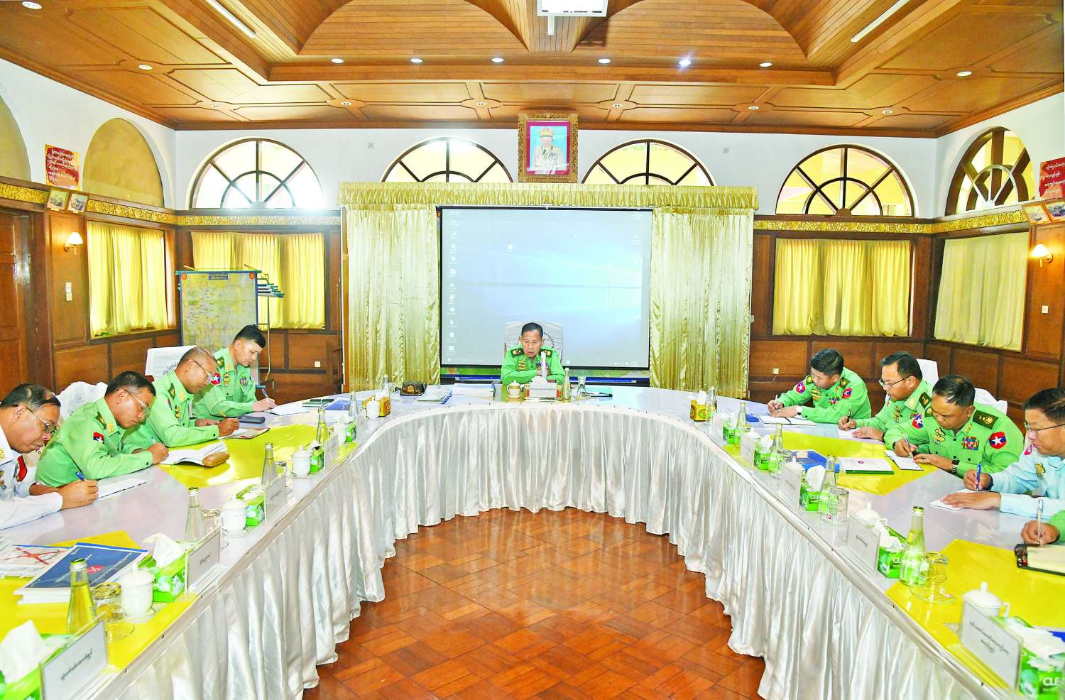 ဆက်လက်၍ နိုင်ငံတော်လုံခြုံရေးနှင့် အေးချမ်းသာယာရေးကော်မရှင် ဒုတိယဥက္ကဋ္ဌ ဒုတိယတပ်မတော်ကာကွယ်ရေးဦးစီးချုပ်၊ ကာကွယ်ရေးဦးစီးချုပ်(ကြည်း)နှင့် အဖွဲ့ဝင်များသည် နယ်မြေခံသင်တန်းကျောင်းများအား မော်တော်ယာဉ်များဖြင့် လှည့်လည်ကြည့်ရှုစစ်ဆေးကြပြီး မိသားစုများနှင့်တွေ့ဆုံ၍ ရင်းရင်းနှီးနှီးလိုက်လံ နှုတ်ဆက်အားပေးစကားပြောကြားကာ တင်ပြချက်များအပေါ် လိုအပ်သည်များအား တာဝန်ရှိသူများနှင့် ပေါင်းစပ်ညှိနှိုင်းဆောင်ရွက်ပေးသည်။ ထို့နောက် သင်တန်းကျောင်း စားရိပ်သာများအလိုက် သင်တန်းသားများ ညနေစာသုံးဆောင်နေမှုများကို လိုက်လံကြည့်ရှုစစ်ဆေးပြီး လိုအပ်သည်များကို တာဝန်ရှိသူများအား လမ်းညွှန်မှာကြားခဲ့ကြောင်း သတင်းရရှိသည်။
