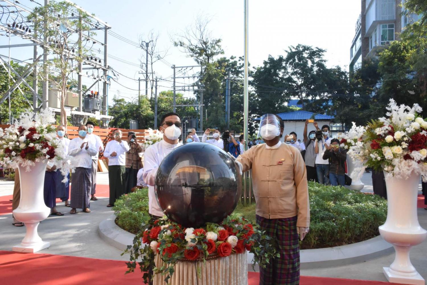 ဆက်လက်၍ မန္တလေးတိုင်းဒေသကြီး ဝန်ကြီးချုပ်ဒေါက်တာဇော်မြင့်မောင်နှင့် မန္တလေးမြို့ပြ ဖွံ့ဖြိုးတိုးတက်ရေး ရန်ပုံငွေရှာဖွေရေးကော်မတီဥက္ကဋ္ဌ ဦးကျော်ကျော်ဝင်းတို့က နိုင်ငံတကာ အဆင့်မီ Bio Safety Level - 2 အဆင့် Public Health Laboratory (Mandalay) အဆောက်အအုံသစ်ကို စက်ခလုတ်နှိပ်ဖွင့်လှစ်ပေးခဲ့ပြီး ဝန်ကြီးချုပ်နှင့် တာဝန်ရှိသူများက ကမ္ဗည်းမော်ကွန်းအား အမွေးနံ့သာများဖြင့် ပက်ဖြန်းခဲ့ကြသည်။