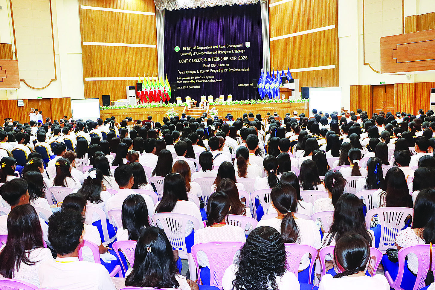 သမဝါယမနှင့်ကျေးလက်ဖွံ့ဖြိုးရေးဝန်ကြီးဌာန သမဝါယမနှင့် စီမံခန့်ခွဲမှုပညာတက္ကသိုလ် (သန်လျင်) ၏ ၂၀၂၅-၂၀၂၆ ပညာသင်နှစ်၊ အလုပ်သင်နှင့် အလုပ်အကိုင်အခွင့်အလမ်းပြပွဲကို ယနေ့နံနက်ပိုင်းက ရန်ကုန်တိုင်းဒေသကြီး သန်လျင်မြို့ရှိ အဆိုပါတက္ကသိုလ်ဘက်စုံသုံးခန်းမ၌ကျင်းပရာ ဒုတိယဝန်ကြီး ဦးသိုက်စိုး၊ ရန်ကုန်တိုင်းဒေသကြီး သယံဇာတရေးရာဝန်ကြီး၊ ပါမောက္ခချုပ်၊ ဒုတိယပါမောက္ခချုပ်၊ သင်ကြား/ စီမံဌာနမှူးများ၊ ဖိတ်ကြားထားသော ဧည့်သည်တော်များနှင့် ကျောင်းသား ကျောင်းသူများ တက်ရောက်ကြသည်။
