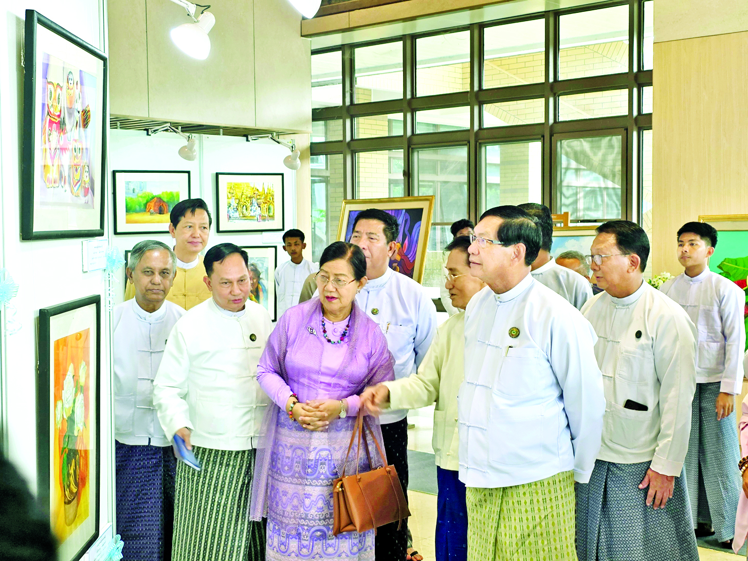 ဦးစွာ ပန်းချီ၊ ပန်းပုဌာနမှ သင်တန်းဆင်းကြမည့် ကျောင်းသား ကျောင်းသူများ၏ လက်ရာမွန်ပန်းချီပန်းပုပြခန်းကို ကြည့်ရှုအားပေးကြပြီး သင်တန်းဆင်းအောင်လက်မှတ်ပေးအပ်ပွဲအခမ်း အနားတွင် ဒုတိယဝန်ကြီးက ကျောင်းသား ကျောင်းသူမောင်မယ်များ၏ ကျောင်းဆင်းပွဲ အခမ်းအနားဖြစ်သကဲ့သို့၊ အနုပညာစွမ်းရည်များ၊ လက်ရာမွန်များကို ဖော်ညွှန်းပြသည့်ပွဲဖြစ်သည့်အတွက် များစွာဂုဏ်ယူပါကြောင်း၊ မိမိတို့ သင်ယူတတ်မြောက်ထားသော ပညာရပ်များအပြင် ပြောင်းလဲတိုးတက်နေသော ဆက်စပ်ပညာရပ်များကိုပါ ဆည်းပူးလေ့လာ၍ အနုပညာရပ်များ ထာဝရရှင်သန်စေရန် ဆောင်ရွက်နိုင်မည့် အနုပညာရှင်များဖြစ်အောင် စဉ်ဆက် မပြတ် ကြိုးစားကြစေလိုကြောင်း ပြောကြားသည်။