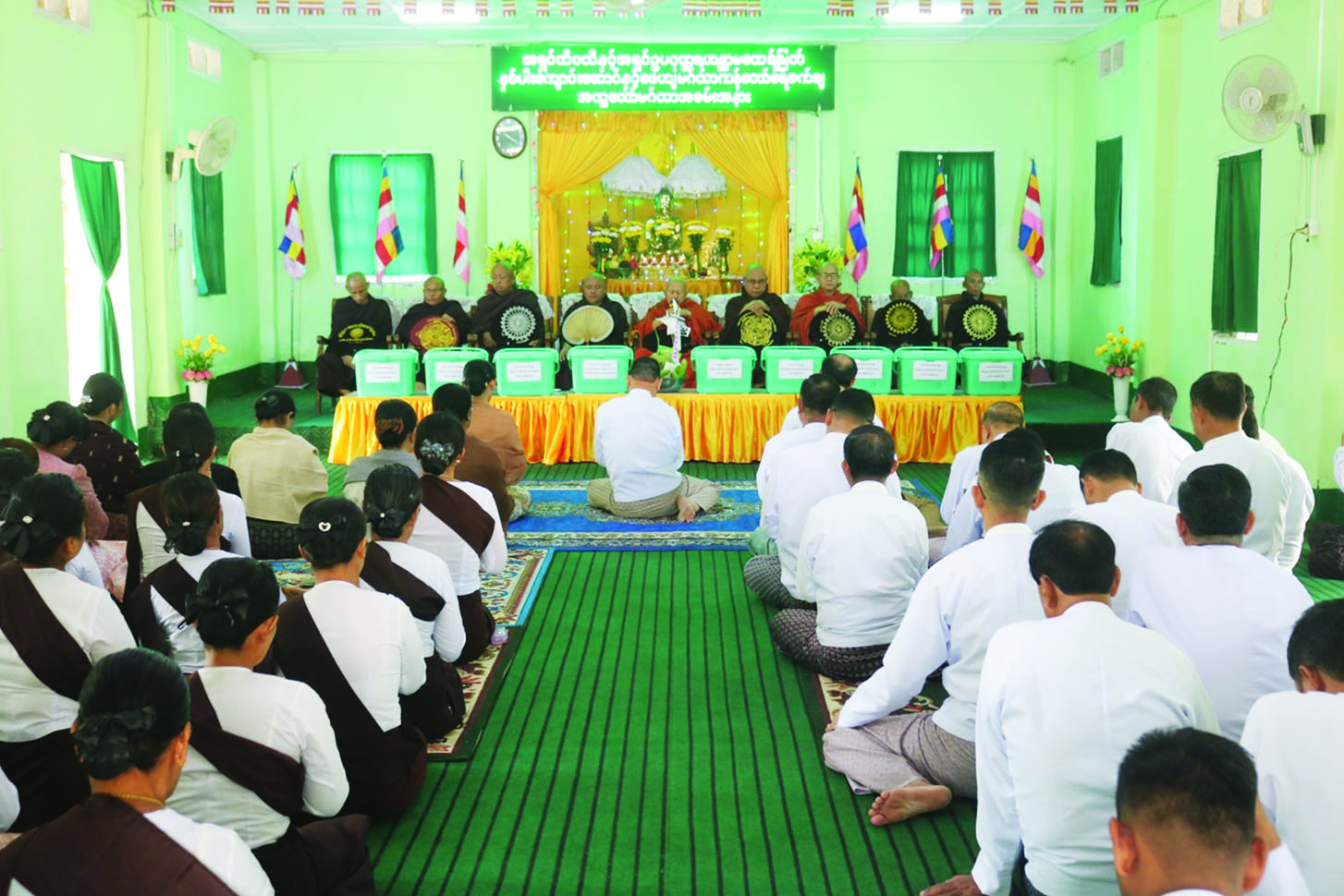 ဦးစွာ စစ်တွေမြို့ရွှေစေတီကျောင်းတိုက် ပဓာန နာယကဆရာတော် အဂ္ဂမဟာ သဒ္ဓမ္မဇောတိကဓဇ ဒေါက်တာဘဒ္ဒန္တအရိယဝံသကဦးဆောင်၍ အလှူတော်မင်္ဂလာအခမ်းအနားအစီအစဉ်အတိုင်းပူဇော်ကြပြီး ပြည်နယ်ဝန်ကြီးချုပ်၊ တိုင်းမှူးနှင့် အလှူရှင်များက ရဟန္တာမထေရ်မြတ်နှစ်ပါးတို့၏ ဆင်းတုတော်၊ ဇေယျမင်္ဂလာကန်တော်အား အမွှေးနံ့သာ ရည်များပက်ဖျန်းကာ ဇိဝိတဒါနငါးနှင့်လိပ်များ လွှတ်ပေးကြသည်။ ထို့နောက် ပြည်နယ်ဝန်ကြီးချုပ်၊ တိုင်းမှူးနှင့် တက်ရောက်လာကြသူများက တပ်ဦးဆုတောင်းပြည့် ပရိယတ္တိစာသင်တိုက် ပဓာနနာယက ဆရာတော်ထံမှ ငါးပါးသီလခံယူဆောက်တည်ကြပြီး ဆရာတော်သံဃာတော်များ ရွတ်ပွားချီးမြှင့်တော်မူသည့် ပရိတ်တရားတော်များ နာယူကြည်ညိုကြ သည်။ ယင်းနောက် ပြည်နယ်ဝန်ကြီးချုပ်၊ တိုင်းမှူးနှင့် အလှူရှင်များက ဆရာတော်သံဃာတော်များအား လှူဖွယ်ပစ္စည်းများဆက်ကပ်လှူဒါန်းပြီး ရွှေစေတီပရိယတ္တိကျောင်းတိုက်ဆရာတော် အဂ္ဂမဟာ သဒ္ဓမ္မဇောတိကဓဇ ဒေါက်တာ ဘဒ္ဒန္တအရိယ ဝံသထံမှ အနုမောဒနာတရားနာယူကာ လှူဒါန်းမှုအစုစုတို့အတွက် ရေစက်သွန်းချ အမျှပေးဝေကြသည်။ ထို့နောက် ပြည်နယ်ဝန်ကြီးချုပ်၊ တိုင်းမှူးနှင့် အလှူရှင်များက ဆရာတော်သံဃာတော်များအား နေ့ဆွမ်းဆက်ကပ်လှူဒါန်းကြကြောင်း သိရသည်။