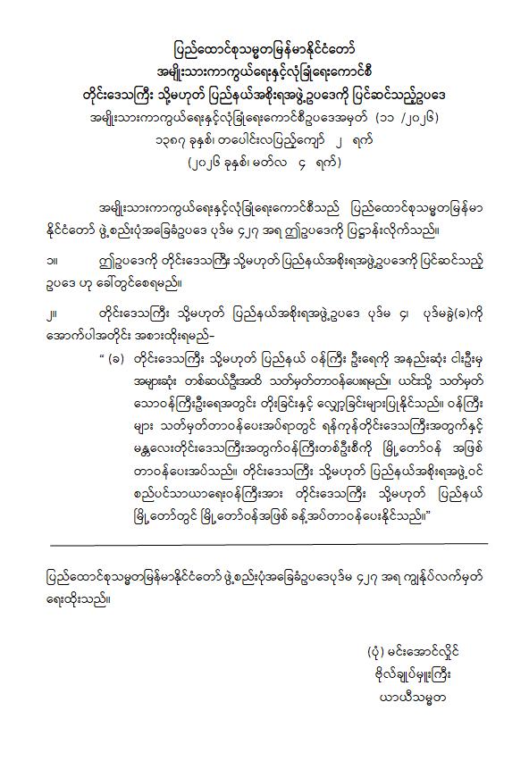တိုင်းဒေသကြီး သို့မဟုတ် ပြည်နယ်အစိုးရအဖွဲ့ဥပဒေကို ပြင်ဆင်သည့်ဥပဒေ